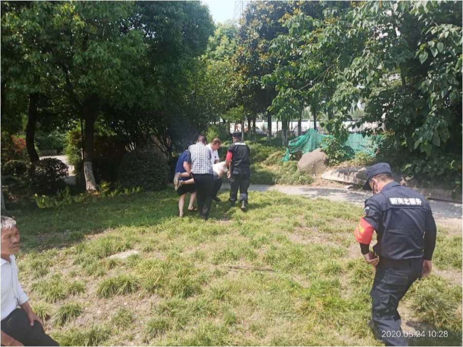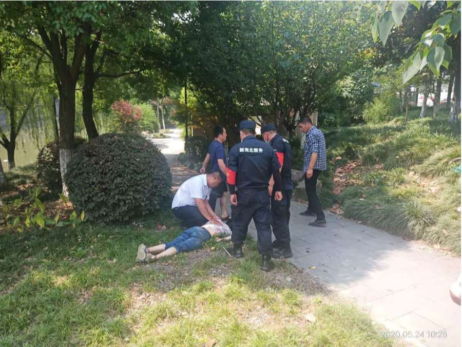 当即,吴家墩社区保安队长黄延杰、班长周斌涛、西区巡逻组组长舒建华三人立马下令启动突发事件应急预案,通知了物业当班经理,并召集东区巡逻组队员赶赴出事地点。