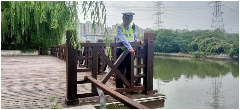 2020年9月19日下午6时左右,浙江保通安保服务有限公司派驻杭州余杭城市开发建设有限公司交通协管员戴月飞(编号:XJ0697)和往常一样在塘栖镇绿荫街与小芳超市十字路口值勤,突然一辆白色轿车停下,一位男子急匆匆下车大呼有人落水,需要我们帮助相救。