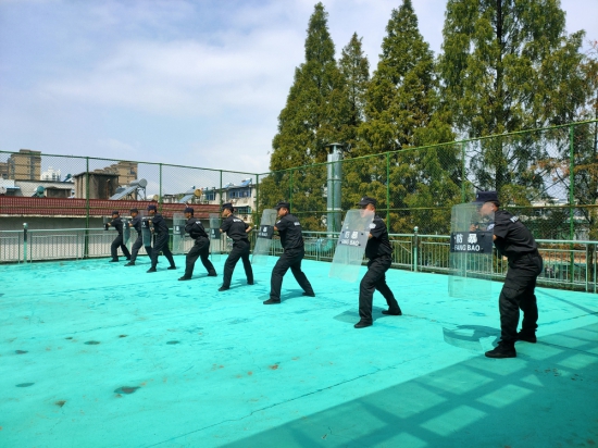 本次训练分为防护装备警棍盾牌、队列与行进、心肺复苏、案件初期处理、灭火器使用、体能(1000m)等体能训练及理论学习。队长对队员悉心教导,耐心讲解动作要领,队员认真听讲,刻苦训练。通过三个月的专项训练,人防保安部对特保队员进行训练项目考评。
