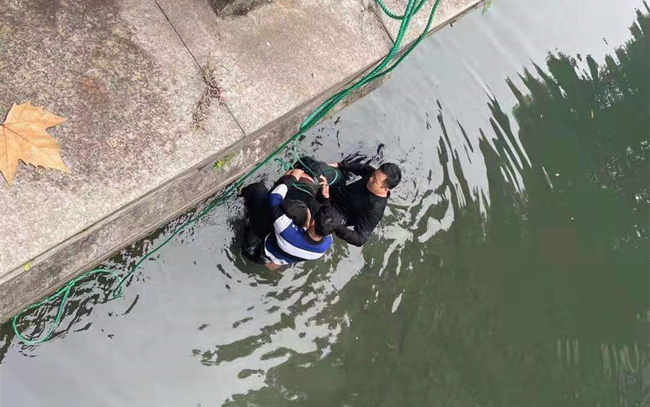 12月8日,大雪节气后的第二天,天色阴沉,气候寒冷,一男子从密渡桥跳入古新河,欲轻生。公司驻省行政中心二号院中队队员陆高伟正在巡逻,发现这一情况后,连忙呼叫其他中队队员并组织展开营救。接到消息后,中队长徐之良和队员徐聪第一时间火速赶到,脚步都没有停顿,果断跳入河中,营救轻生男子。由于河水中间河道较深,两人协力将该男子拖到浅水区,并用自己的身体将男子支撑出水面,自己却浸泡在河水之中,忍受着刺骨的寒冷和河水的脏臭。此时,离该男子跳入河中仅仅过去两分钟。
