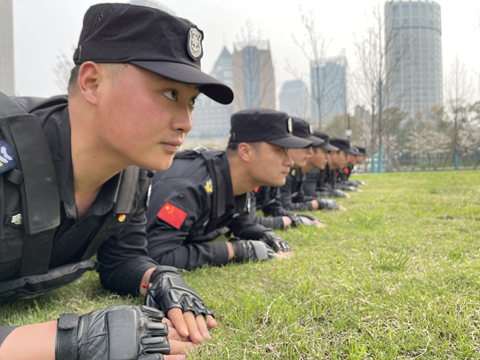 采访手记:采访始于卯时,终于亥时。跨出二号院的大门时,我们不禁回头望了望夜幕中的这幢大楼,望了望在门口执勤岗上站岗的队员,笔挺的站姿、严肃的表情,充满戒备的眼神里无不彰显着下城安保特保队员特有的形象与素质。他们是公司精挑细选组建而成的,平均年龄不到25岁,男队员平均身高1米84,女队员平均身高1米68。花样的年华,他们选择了这样一份在外人看来并不起眼的职业,在寒风中开始,在春夜里延续,在孤独中坚守,用坚强的意志、坚定的信仰、坚实的作风为省行政中心二号院筑起一道坚固的防线,守护着它的安全!