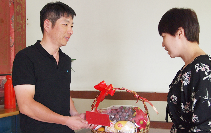 当我们来到休息在家的曹海华家,送上来自集团领导的慰问礼品和红包,我们也好奇地问他,是什么信念使他能够365天如一日的保持工作的热情,用长期的坚守和付出赢得群众和同事们的口碑。 对此曹海华同志只是很谦虚地说:“惭愧惭愧,我只是做好本职工作而已。在我看来,工作没有高低贵贱之分,只要自己喜欢做的事,哪怕是受罪也是一种快乐”面对荣誉和嘉奖,他只是这么云淡风轻地抹掉了风尘仆仆和艰辛的坚守,而报以一句“只是因为喜欢”。来自余杭塘栖农村的他,有着大地一般的淳朴和踏实,在自己热爱的交通辅助员这个工作岗位上深耕细作,以忠诚为要,心中有党不忘恩。干净为本,心中有戒不妄为。担当为先,心中有责不懈怠。以理想信念为原生动力,以职责使命为意志盔甲。在我们建党百年庆典来临之际,挥舞出属于仁和人、属于鸿民保安的那一抹红色风采。