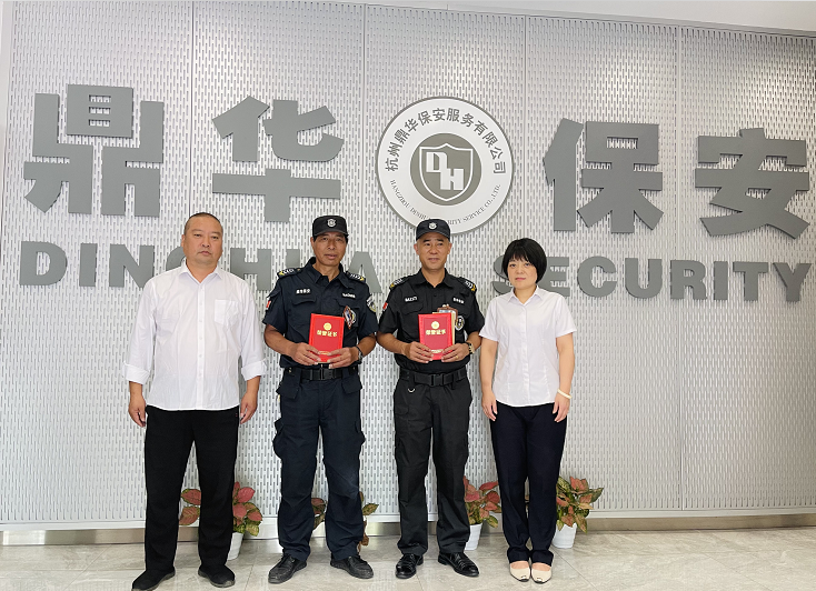 杭州鼎华保安服务有限公司工会叶主席说,保安员是保一方平安,是驻点平安的“守护神”,丁会强与陈国良两位保安员以实际行动践行了敢于牺牲、保一方平安、忠诚为民的优秀品质,彰显了保安员保一方平安的英雄本色,他们就是我们身边的学雷锋标兵、就是我们身边的好保安、就是我们身边的道德模范。