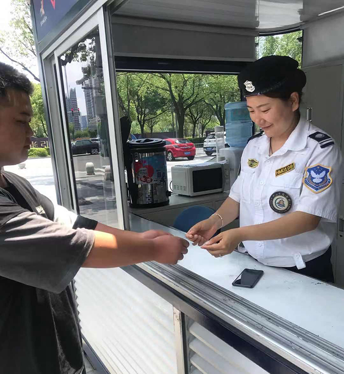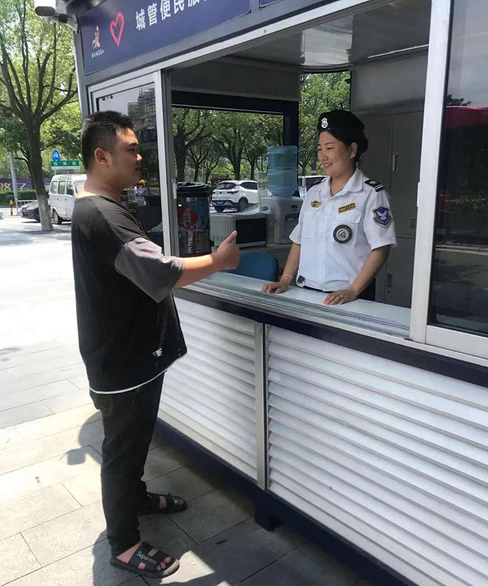窗口服务序化员小姐姐亲切地递上手机,并细心地交代他:“小伙子,下次不要再粗心遗忘啦。”失主乐呵呵地接过手机,不好意思地点点头,并对着岗亭里的小姐姐竖起大拇指,由衷地感谢我们鸿民保安城市序化员拾金不昧服务群众的高素质品格。