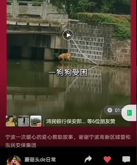主人把这则发生在宁波的爱心暖心救助经过发在网络上,鸿民保安队员爱心无界服务无界的温情善良品格,得到了市民群众们的大力点赞!