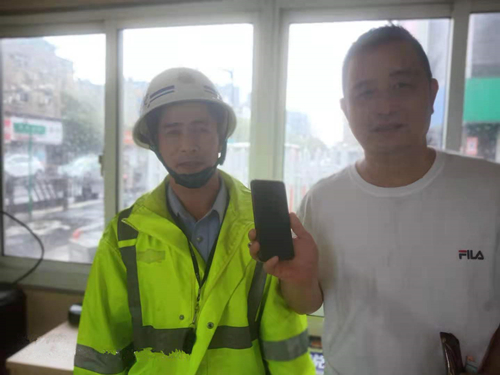 桂花西路协管员陈洪海,25日那天像往常一样与队员孙苗友、汪建忠进行巡逻,因为大雨路上行人很少,巡逻至菜市街路段,陈洪海看到地上有一部手机,陈洪海立马弯下腰捡起手机。担心手机进水时间长,容易损坏,情急之下,他用衣角擦干手机上的水分,并赶忙折回春秋南路岗亭等待失主。过了短短5分钟,电话响了,接起电话的一刹那,陈洪海清晰地听到对方长嘘了一口气:“还好还好,手机没有关机”。陈洪海告知了岗亭位置后,失主很快赶到现场。失主的第一反应不是拿回手机,而是掏出300元现金给陈洪海,并激动地说:“太谢谢你了,这部手机是我上个月刚买的新手机,这点小意思希望你收下。”陈洪海怎么也不肯收,连连表示这是自己应该的。陈洪海2018年5月入职富阳保安公司,一直从事道路协管员工作。从最初的东方茂地铁项目到大盘山隧道工程再到今年的新项目桂花西路沿线改造工程,陈洪海一直致力于道路交通服务工作。无论寒冬还是酷暑,一直坚守在艰苦的交通岗位,从未有过任何怨言。他笑着说:“每当我身穿制服,站在马路上指挥交通,确保行人安全、道路畅通,内心就有一种无比的自豪感。”