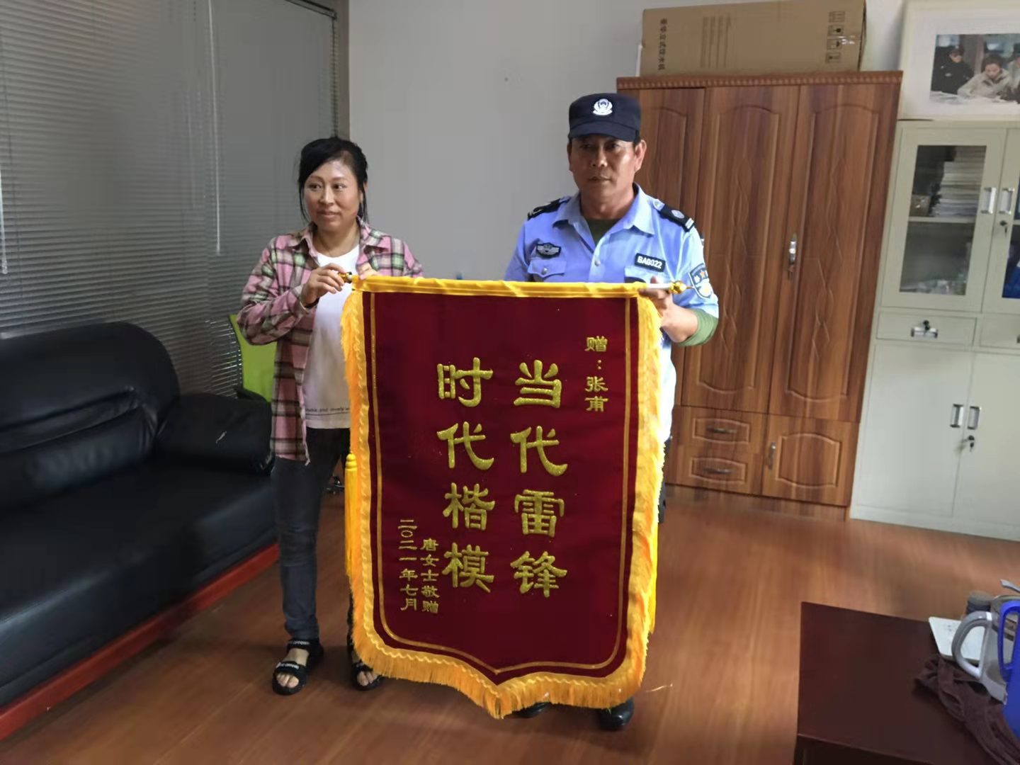 事后了解到,该女士姓唐,当时因没吃早饭突然晕倒在地,幸好有明邦保安员张甫及时相救,才避免了严重的后果,我司保安张甫的雷锋精神让唐女士很是感动,26日上午唐女士特地来到祥茂路75号警务室送上一面“当代雷锋,时代楷模”的锦旗,以表达感激之情。张甫表示,自己只是尽己所能,做好工作职责,