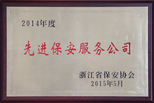 杭州余杭保安服务有限公司荣获浙江省2014年度先进保安服务公司