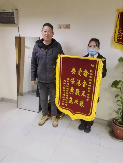 由于密码箱保存着重要信息,失主拿到密码箱后感激不已,随后,失主为队员送来一面写着“拾金不昧·爱岗敬业·安保典范”锦旗以表感谢。