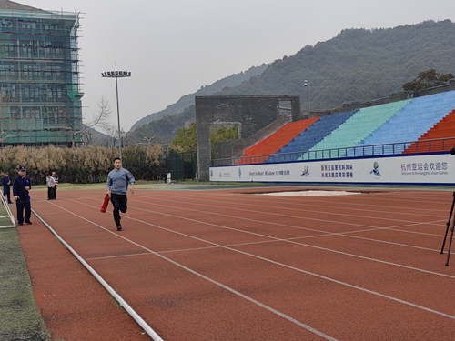 比赛当日,队员们穿着运动装整齐有序地到达比赛现场进行抽签。比赛开始后,区交通集团代表队6名队员首先进行了50米灭火器接力赛往返跑,随着一声令下,队员如箭般冲出跑道,手捧着沉重的灭火器直奔对面的队员,第一棒、第二棒、第三棒......我队成功甩开队友山居集团,不幸的是第四棒队员李杭锋因鞋底打滑,在冲刺的时候不慎摔倒,根据比赛规则,扣除5秒时间,因这次意外,区交通集团代表队无缘前三甲。但是队员们在赛场上的奋力拼搏精神值得我们学习。区教育局代表队6名队员稳稳地完成一个个项目,队员之间高度的配合默契度成功拿下了总分第三名。