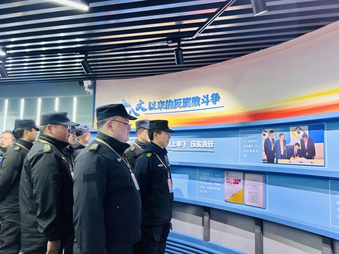 参观前,公司领导为全体队员作了动员讲话。他强调,作为国有企业的员工要牢固树立廉政意识,筑牢廉洁防线,不触红线,不越底线,养成干净工作、干净做事的良好习惯。希望通过接下来的参观,大家能从反面典型案例中汲取教训,不断夯实清正廉洁的思想根基,增强纪律意识和规矩意识,进一步养成在受监督和约束的环境中工作生活的习惯,营造干净干事的氛围,始终保持思想上的清醒坚定,以实际行动树立新时代国企安保人员的良好形象。