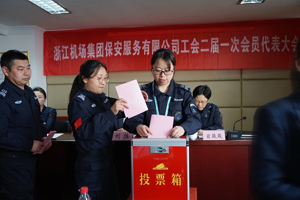 3月27日下午,浙江机场集团保安服务有限公司工会召开二届一次会员代表大会。集团工会副主席、工会办公室主任翁薇薇到会指导,公司党支部书记、总经理刘胜作为特邀代表参会。公司副总经理顾晓燕主持会议。