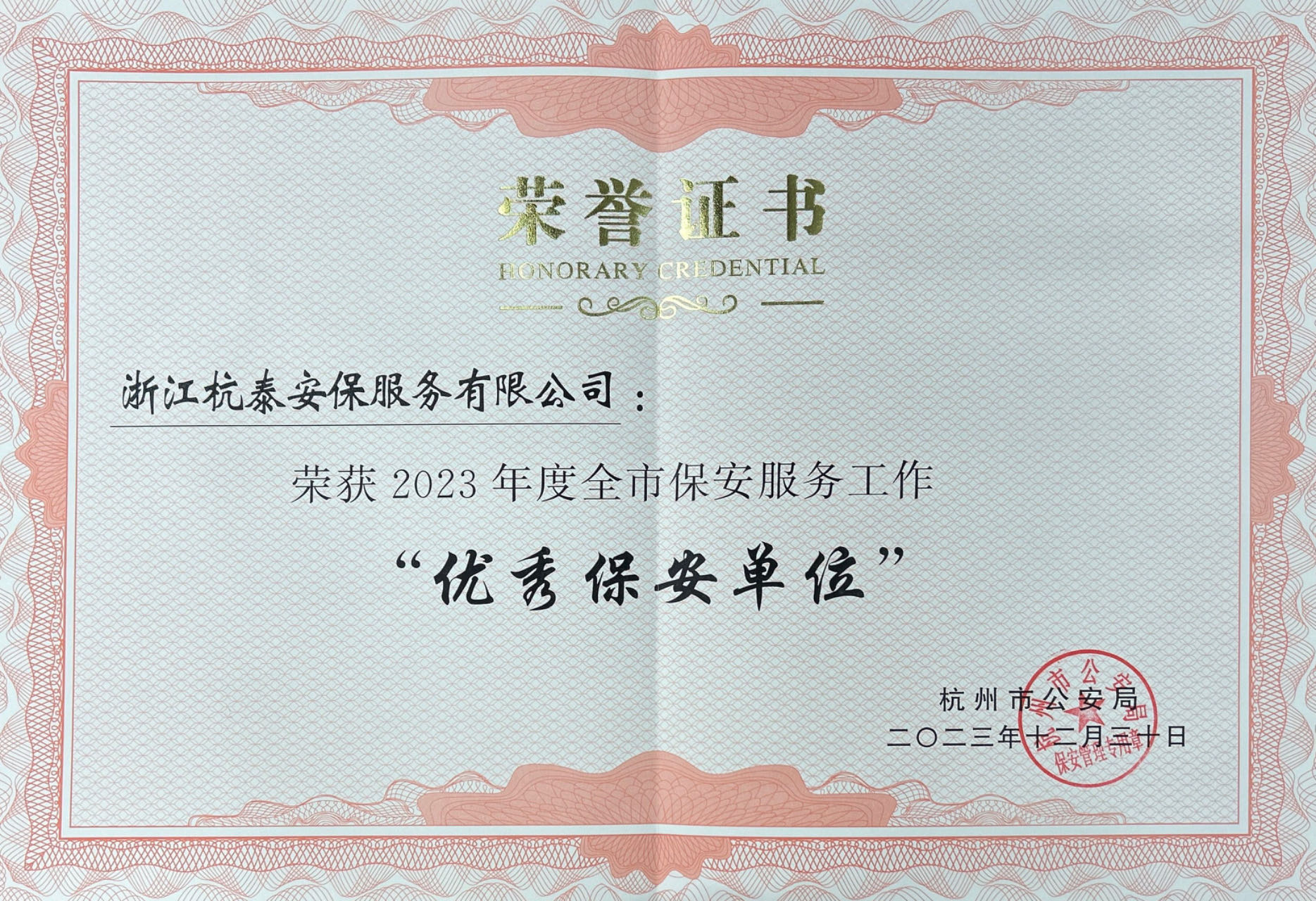 “优秀保安单位”