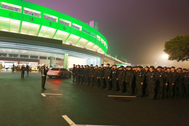 在三天的安保活动中,公司共出动安保力量近6000余人次,安装隔离护栏15000米,驱逐无人机3架,圆满完成告五人演唱会,薛之谦演唱会和中超联赛第四轮浙江队主场迎战青岛西海岸队等三场大型活动