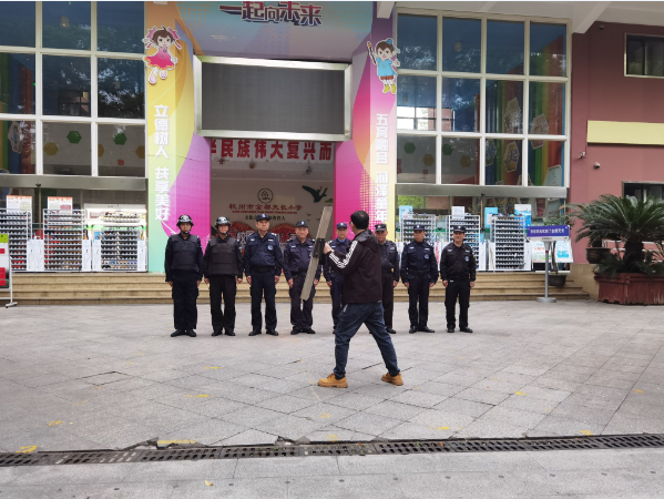 为进一步强化学校安保工作,提高安保人员的校园反恐防暴意识,提高防暴处突能力,确保在突发事件发生时安保队员能迅速、有效地管控和处置。4月12日下午,浙江力邦保安公司在金都天长小学组织吟朝、近江、喜洋洋、始板桥等幼儿园项目开展反恐防暴演练活动,现场特邀钱江万豪安全部经理范经理,进行现场指导反恐防暴演练。