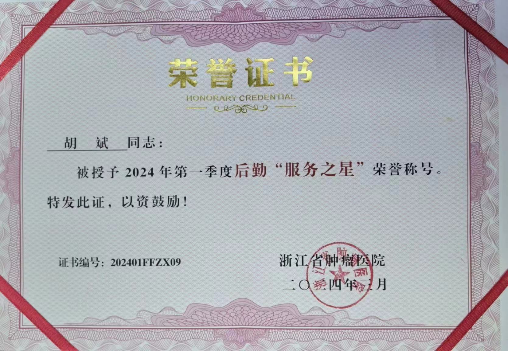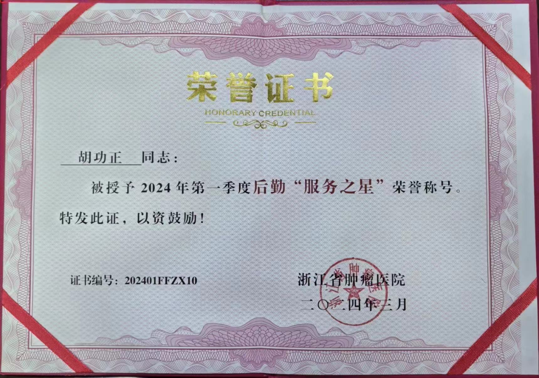 无人断言唯有宏大辉煌之壮举方能赢得赞誉,持之以恒的默默奉献亦同样令人肃然起敬。在浙江省肿瘤医院2024年第一季度的后勤“服务之星”评选活动中,杭泰驻浙江省肿瘤医院项目部队长胡斌、队员胡功正荣获季度“服务之星”称号。
