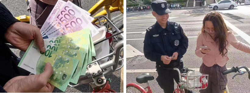 4月24日下午15:50分许,力邦保安驻点EFC欧美金融城项目的安保队员冯邓在执勤时,在T4机动车出口处拾到2500欧元整(价值人民币19800元),他当即将此事上报物业。考虑到失主丢失财物肯定很着急,又联系不上失主,他就留守原地等待失主。下午16:03分左右,失主终于回到现场来认领,在核实完失主身份后,安保队员冯邓主动将失物交还给失主(姚女士)。