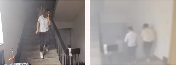 随着烟雾漫起、警报声响,本次应急消防演练正式拉开帷幕。