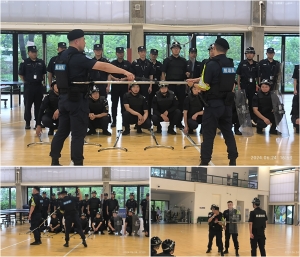 为强化中国美术学院校园安全管理,进一步加强校园治安防控体系,全面提升警校联动协同能力,杭泰安保公司联合属地公安PTU为驻点中国美术学院良渚校区的保安开展校园反恐处突专业技能培训。