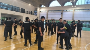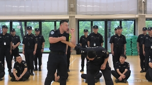 防暴器材讲解完毕后,教官还给保安队员进行了近身实战技巧分解教学。为了让队员们快速领会动作要领,教官们不仅亲自上场进行动作演示,还邀请了队员合作演练。经过教官的模拟示范后,全体参训队员以小组为单位轮流进行操作练习。练习期间,教官还进行了一对一示范指导。