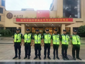 杭州中学保安队长杨人镜将赵大队的要求一一落实到具体行动上。在队长的严格要求下,队员们在考试当天做好车辆疏导工作,引导接送车辆有序停放,提醒驾驶人员禁止鸣笛,保障了考点及周边环境平稳有序。