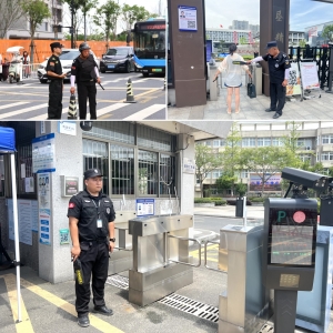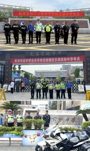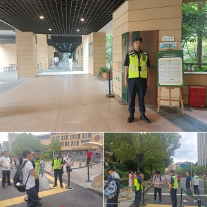杭泰安保驻钱塘区中学保安项目积极配合,为各个考点增加安保力量,要求执勤人员提早到岗、严阵以待。他们身姿挺拔、神情专注,有条不紊地指挥着交通,确保考点周边道路畅通无阻,为中考增添了一份安全感。