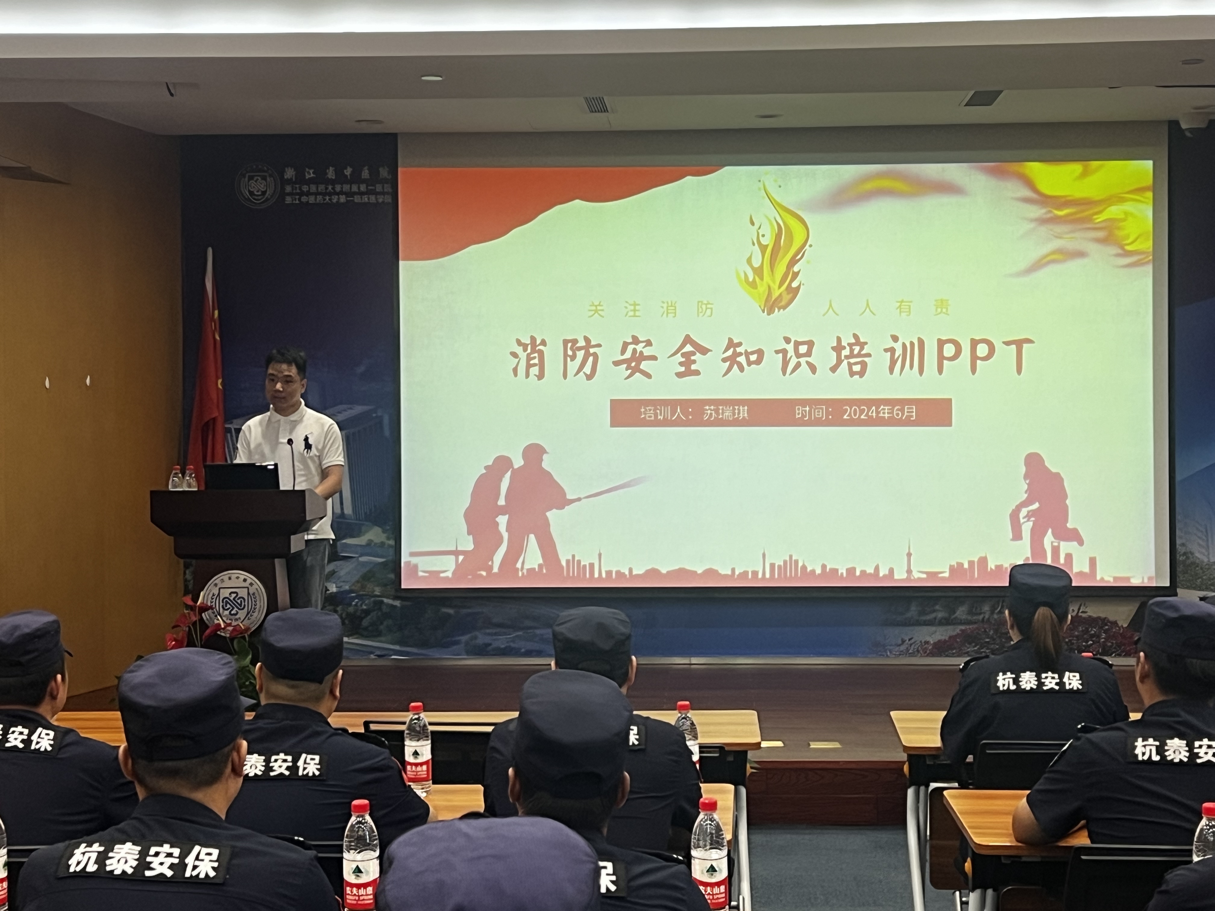 为提升杭泰安保驻浙江省中医院钱塘院区保安队的消防安全意识,此次培训特邀一级注册消防工程师、中国消防协会会员、杭泰安保督查培训部讲师苏瑞琪主讲。