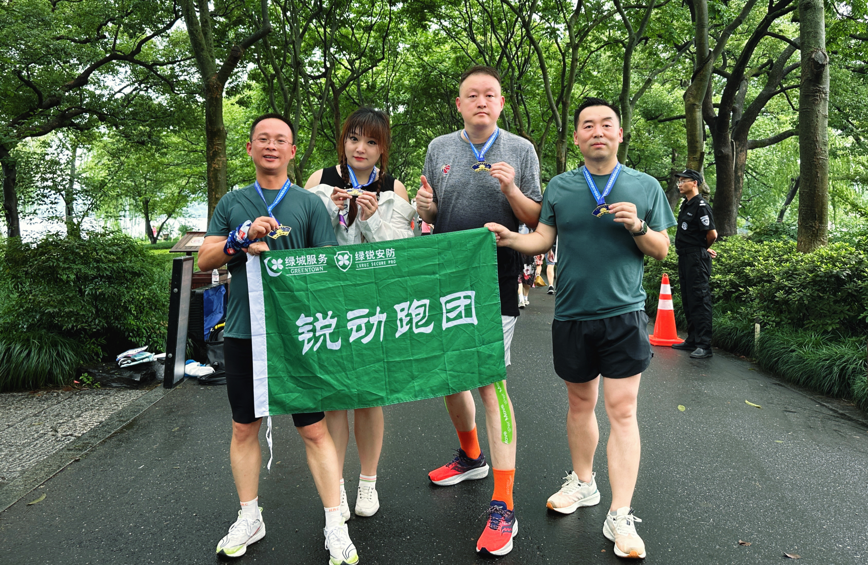 6月29日的杭城,大雨暂歇,天气见晴。浙江绿锐安防服务科技有限公司总经理张阳率领着公司锐动跑团的三名成员,激情参与了“柏丽”杯神马营爱跑者俱乐部苏堤全马接力赛,挑战42.12公里的全马路程。
