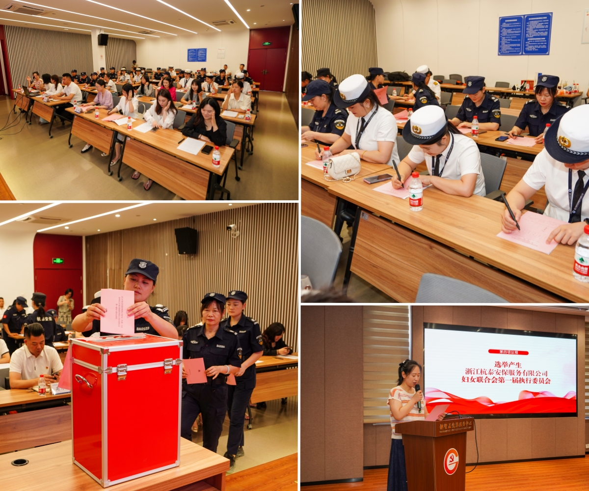 会议审议通过《浙江杭泰安保服务有限公司第一次妇女代表大会选举办法(草案)》、监票人和计票人名单、执委候选人建议名单,并按照《中华全国妇女联合会章程》及选举工作程序要求,经全体妇女代表现场选举、当场计票并公布计票结果。选举产生浙江杭泰安保服务有限公司妇联第一届执行委员会委员7名。随后,召开浙江杭泰安保服务有限公司第一次执委会议,浙江杭泰安保服务有限公司行政人事部经理彭玮同志当选为主席,任涵玥、吴碧洋同志当选为副主席。