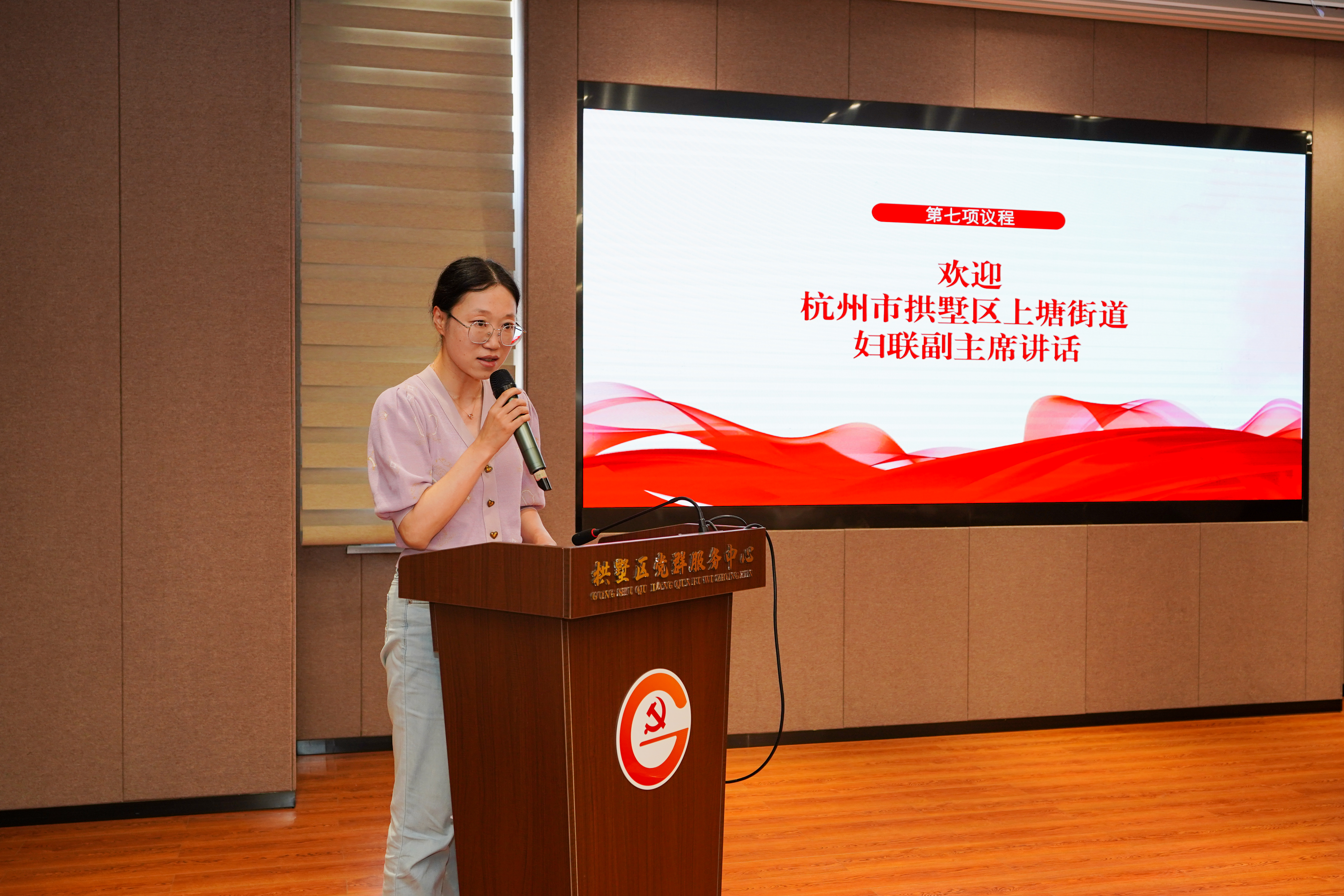 上塘街道妇联副主席袁颖代表上塘街道妇联对本次大会的胜利召开表示热烈祝贺,并对浙江杭泰安保服务有限公司妇女联合会提出以下三点希望: