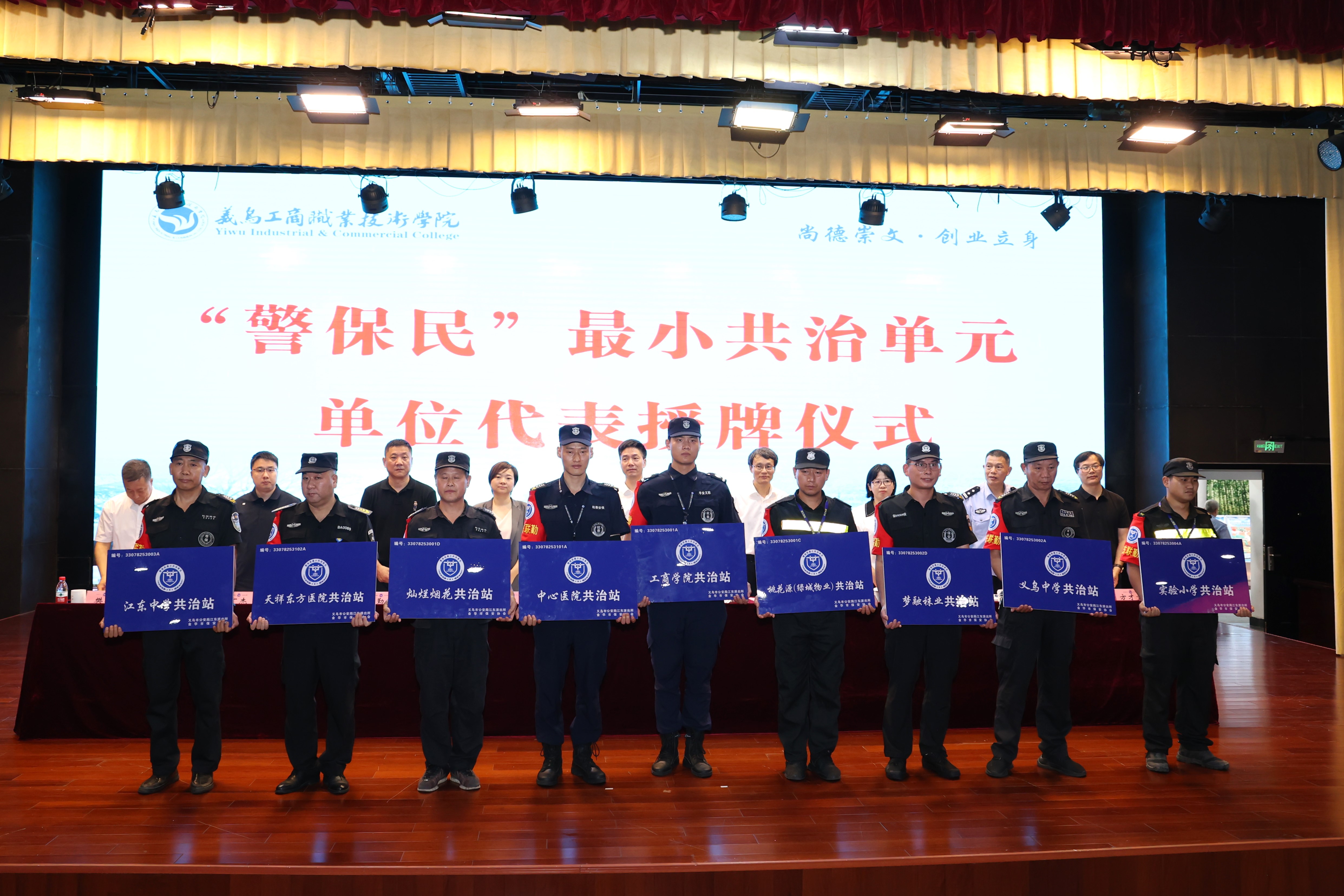 为进一步深化平安校园共建机制和创新“平安驿站”联动品牌,打造高水平、高效率的警校联动防控体系,义乌工商职业技术学院联合义乌市公安局举办警校共建“平安驿站”推进会暨“警保民”最小共治单元建设启动仪式。浙江杭泰安保服务有限公司驻义乌工商职业技术学院保安队作为学院“警保民共治站”代表接受授牌。