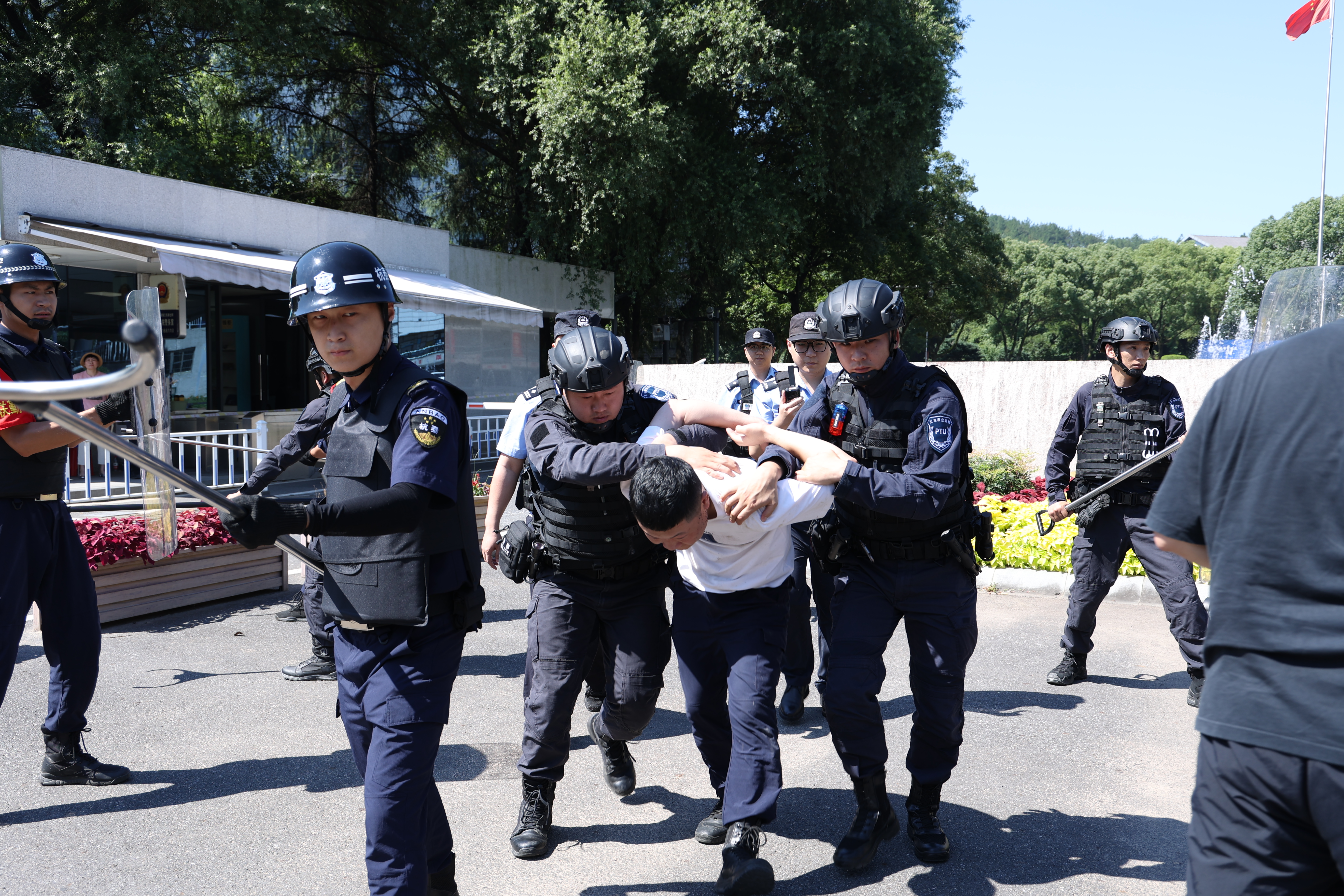 从采取防冲撞措施到疏散人员,从运用战术与恐怖分子周旋到联合警方对嫌疑人进行控制,保安队员们沉着应对、行动迅速、配合默契,展现出了高度的组织纪律性和团队协作精神。演习各环节有条不紊,有序推进,整个过程紧张有序,达到了预期效果。