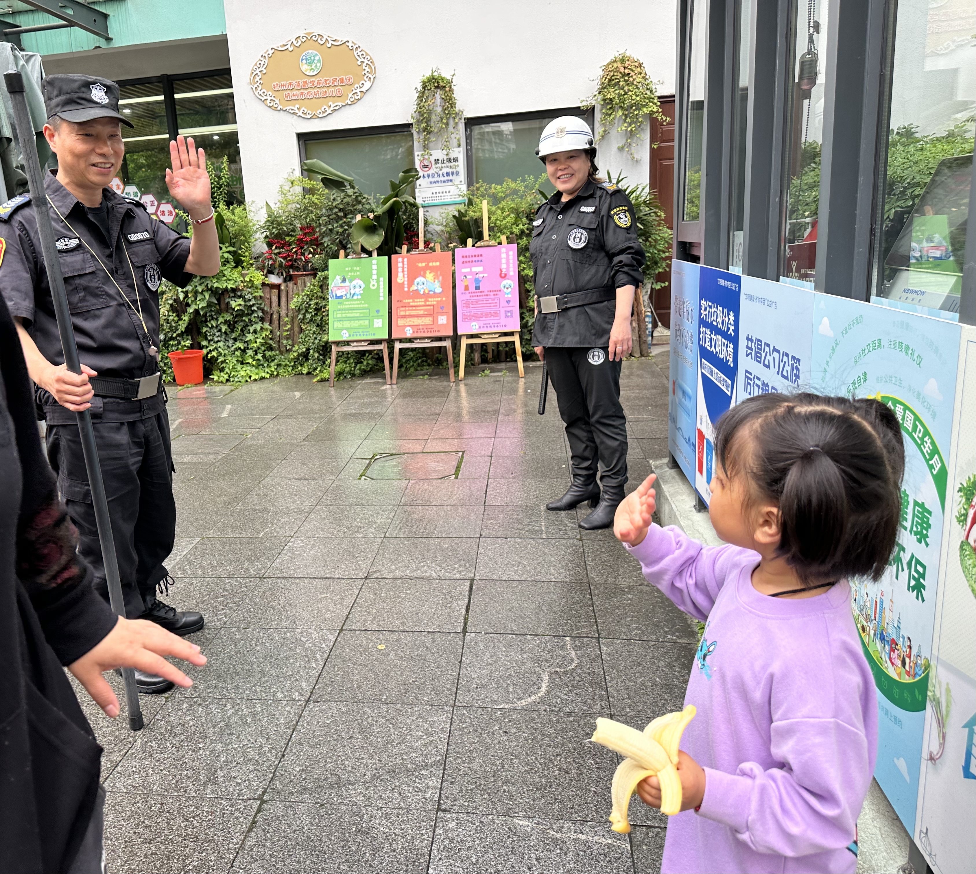 他们是谁?他们是拱墅安保集团校园直属大队派驻在杭州京杭幼儿园的保安队员查智祥和裴美华。他们与这面蔷薇花的奇妙缘分,源自9年前的举手之劳,始于9年中的精心养护。