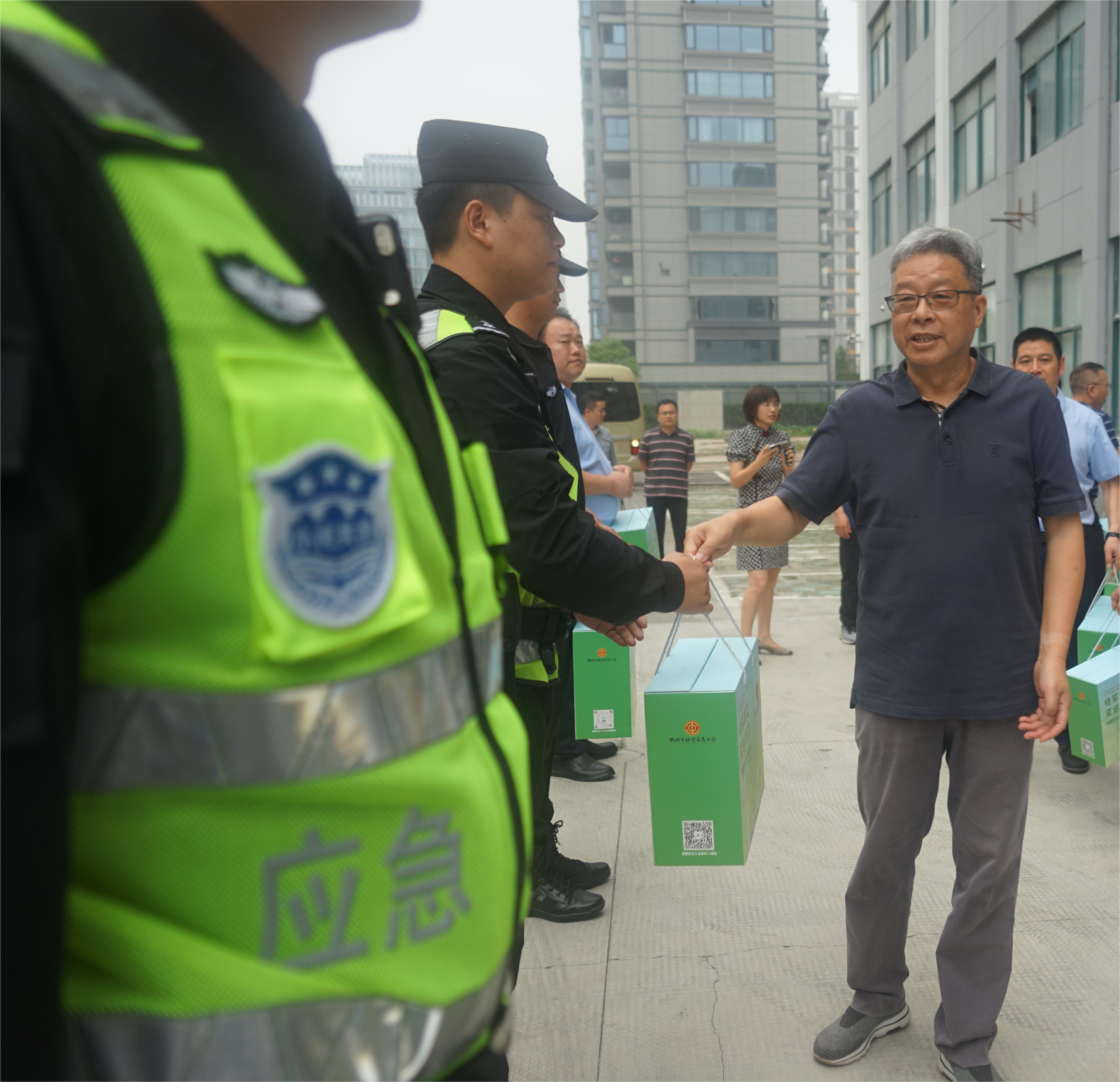 7月12日上午,拱墅区人大常委会主任吴才敏 、拱墅区政协副主席杨俊、上塘街道人大工委主任史小斌等领导一行莅临公司,为炎炎夏日坚守在高温一线的保安员送来高温清凉慰问品。城运集团副总经理包亮、纪委书记张霞娟、拱墅安保集团董事长陈超、领导班子成员陪同。