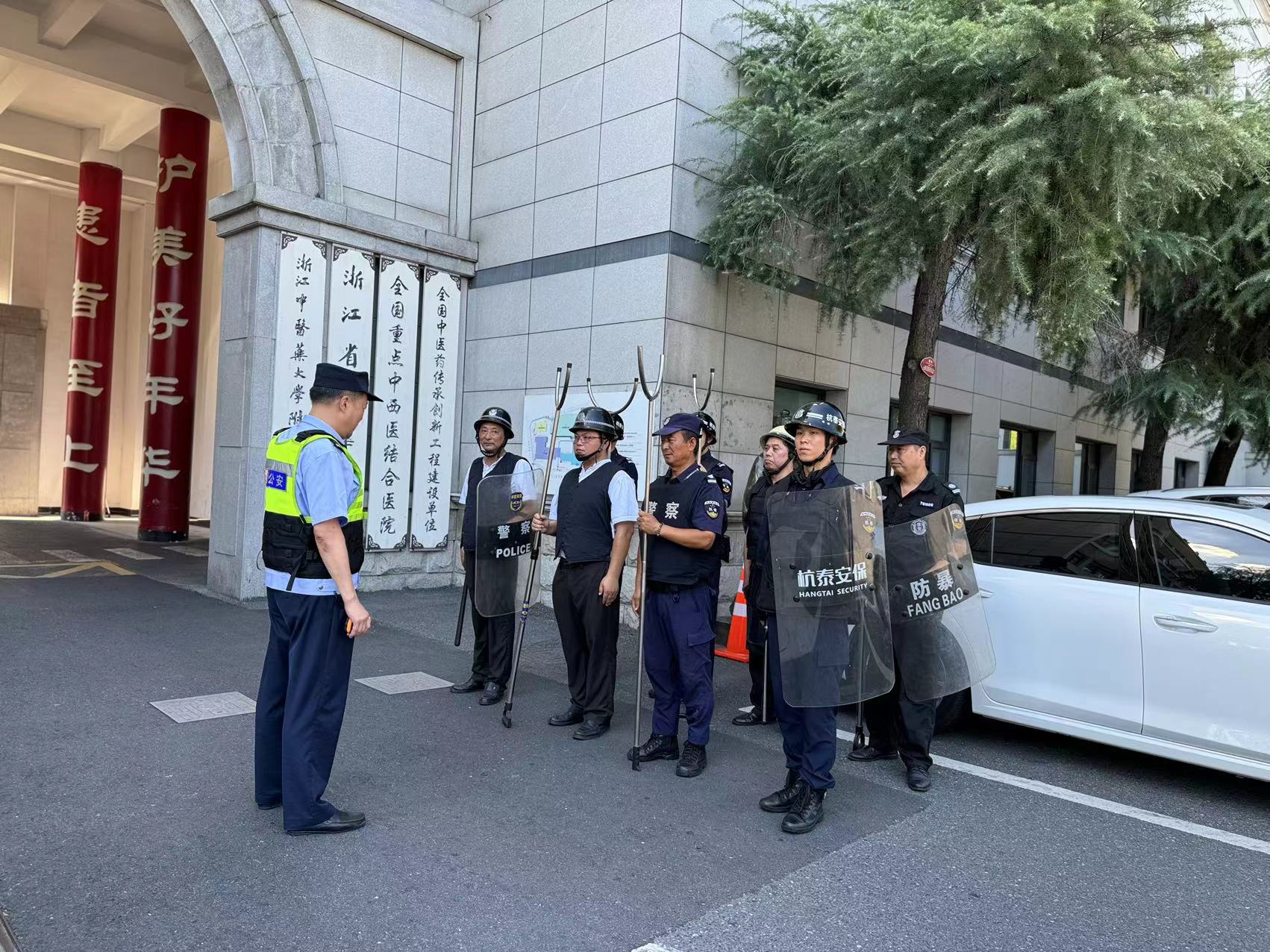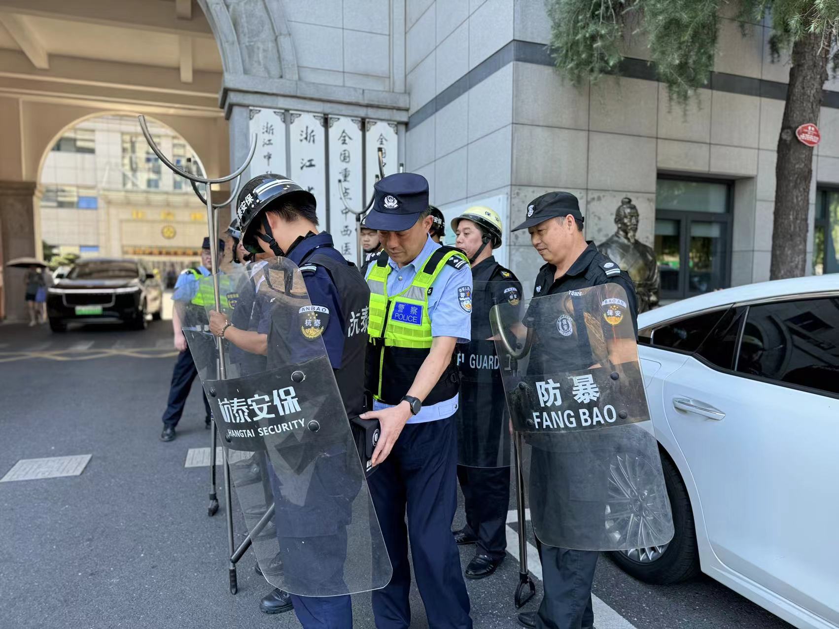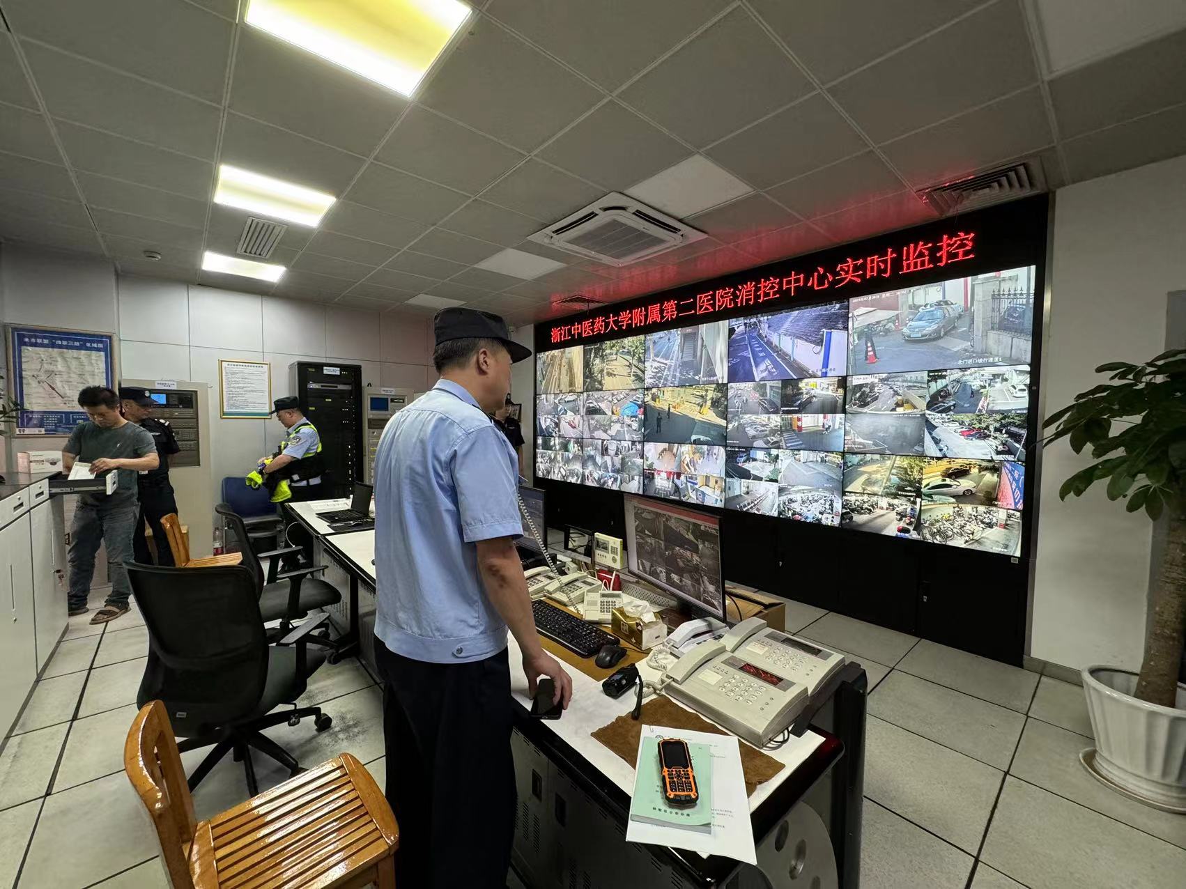为进一步提升浙江中医药大学附属第二医院医护人员和保安队员的反恐防范意识,切实强化医院的应急处突能力,2024年7月30日下午,米市巷派出所联合医院开展“四联三防”反恐防暴应急演练,并对安全防范重点部位进行检查。杭泰安保驻浙江中医药大学附属第二医院保安队积极配合。
