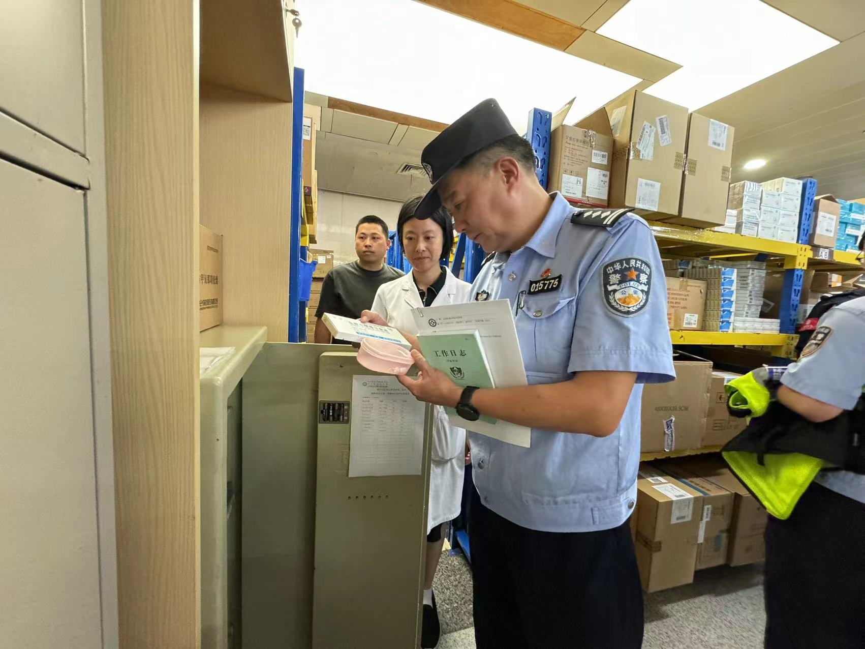 王警官重点就医院防暴反恐应急预案、精麻类药品储存仓、一键报警器及安检设备运作情况进行全面检查。随后,王警官与医教科、保卫科负责人进行座谈,针对排查时发现的一起医患纠纷进行剖析并商议解决方案。同时,拟定在医院所有门诊室内安装一键报警器,并在住院部主要出入口增设安检设备。最后,民警针对本次检查中发现的安全问题提出整改意见,要求相关负责人做好自查自纠工作,增强对重点部位、重要出入口的监控及巡查力度。
