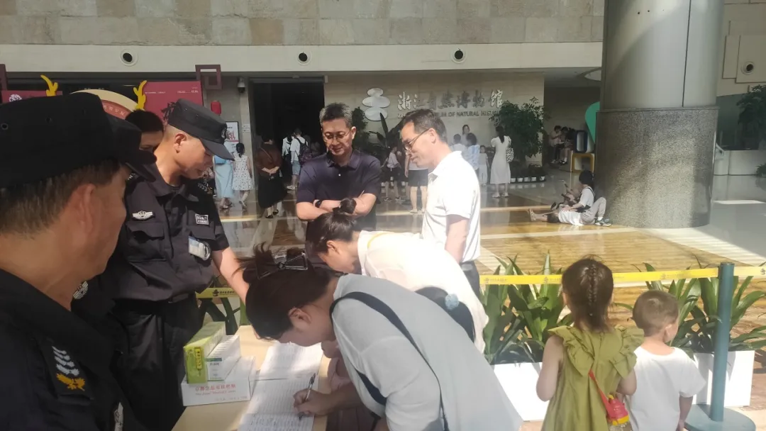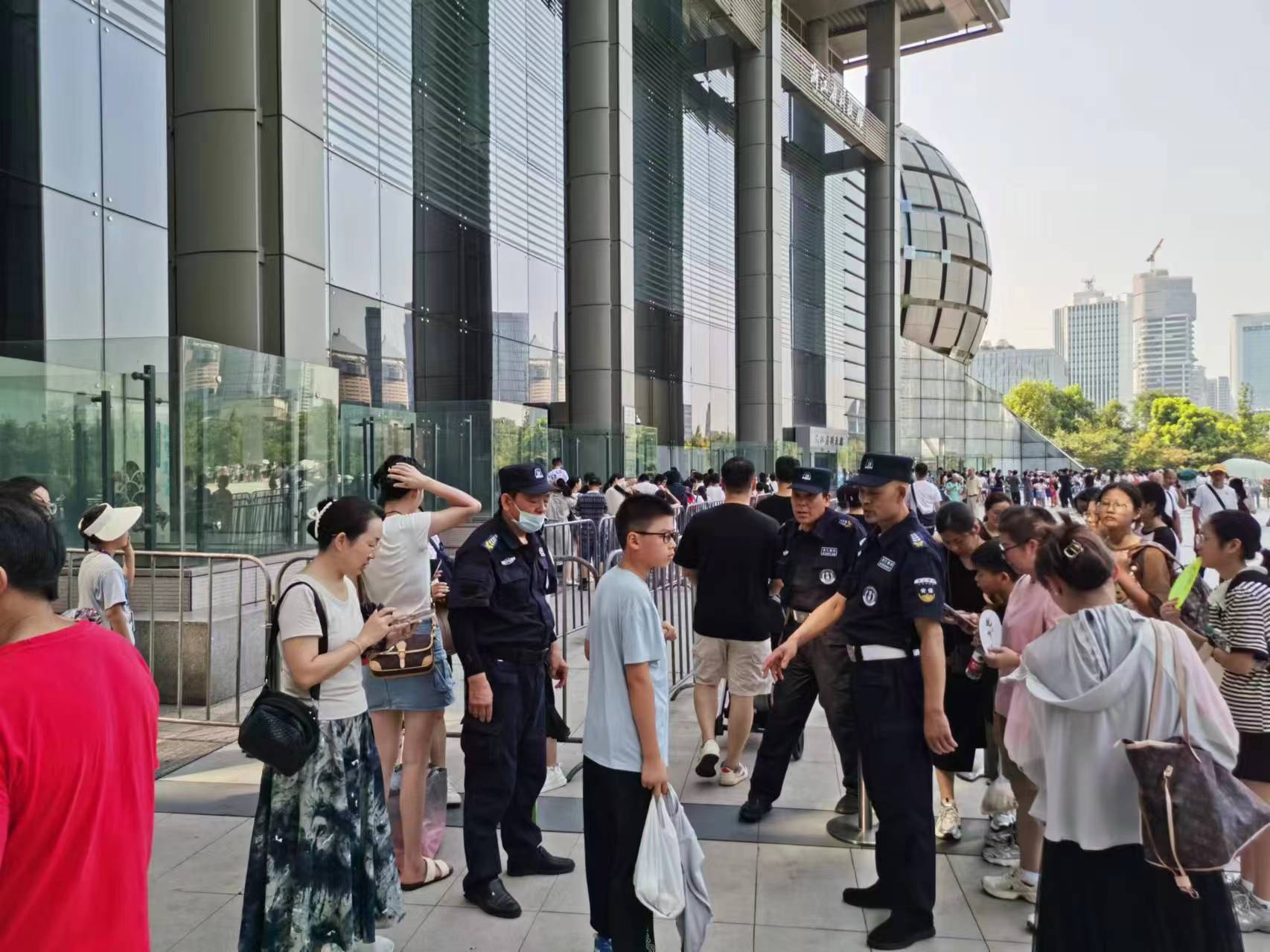 据统计,杭州馆免预约首日平稳有序接待游客15000余人次,为有效应对“顶流”引起的客流量激增,全力确保馆内外的绝对安全,浙江德邦保安服务有限公司驻浙江自然博物院安保队充分结合馆内消防安保工作区位性、假期性特点,多次召开专题会议研判,及时调整执勤模式,积极求变、主动应变,高质量完成浙江自然博物院及管辖区域的暑期安全保卫工作。