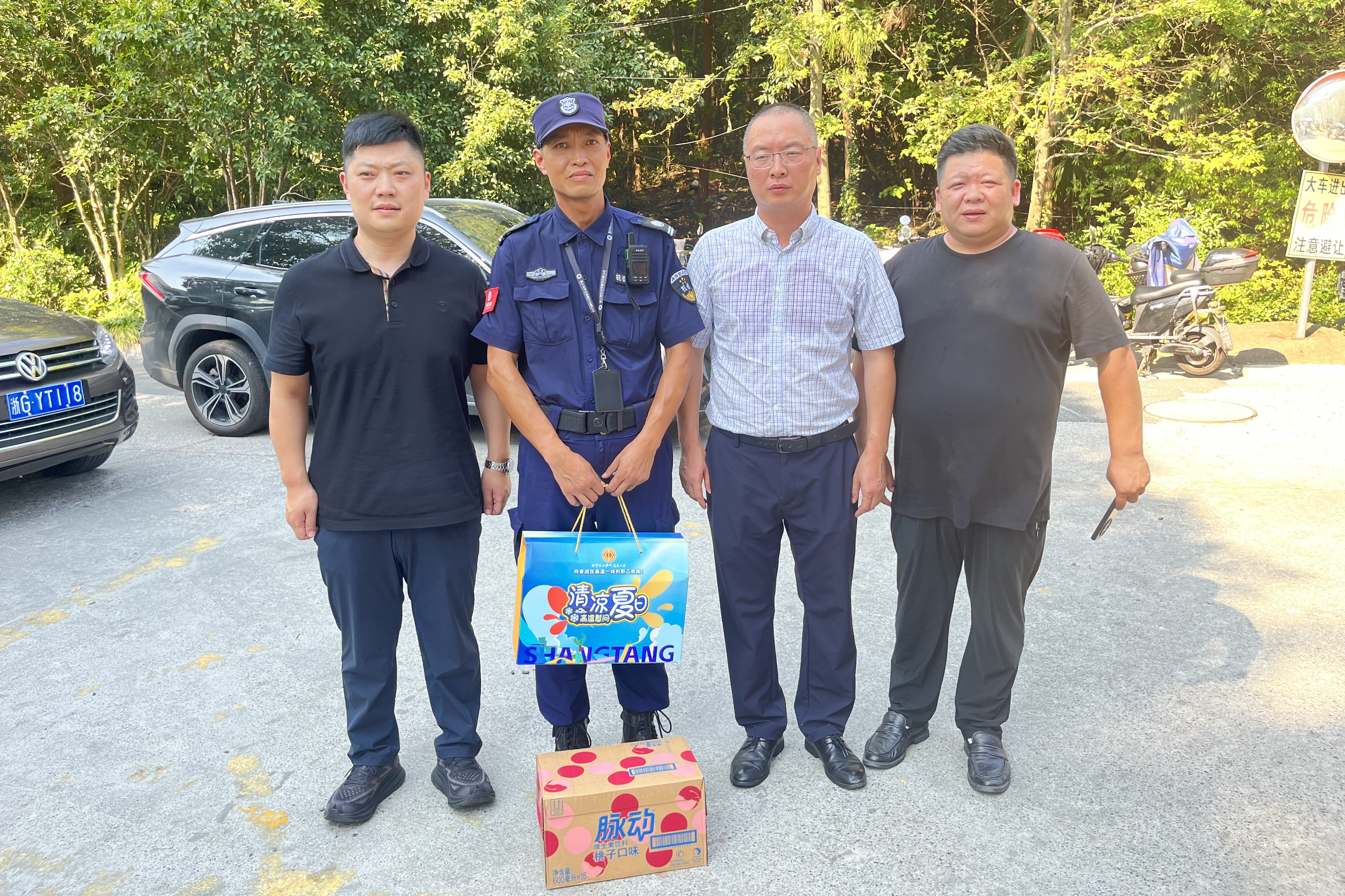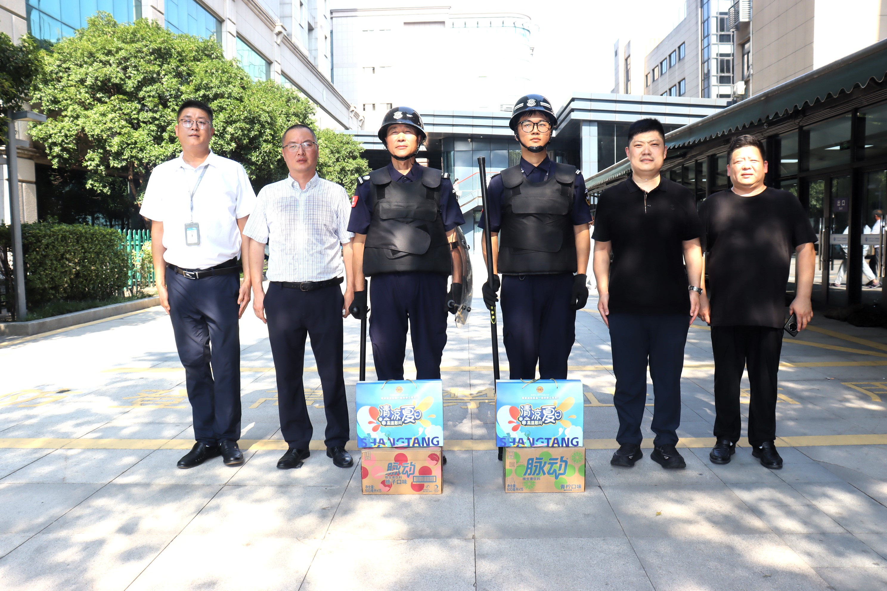 浙江省肿瘤医院保卫部和浙江杭泰安保服务有限公司主要领导邵佳楼共同前往各个岗位现场,送去了对驻点项目部队员们的关心,同时将医院和公司分别准备的解暑饮品和防暑礼包送到队员们的手中,为他们带去了清凉和鼓励,也极大地激发了队员们的归属感和积极性。
