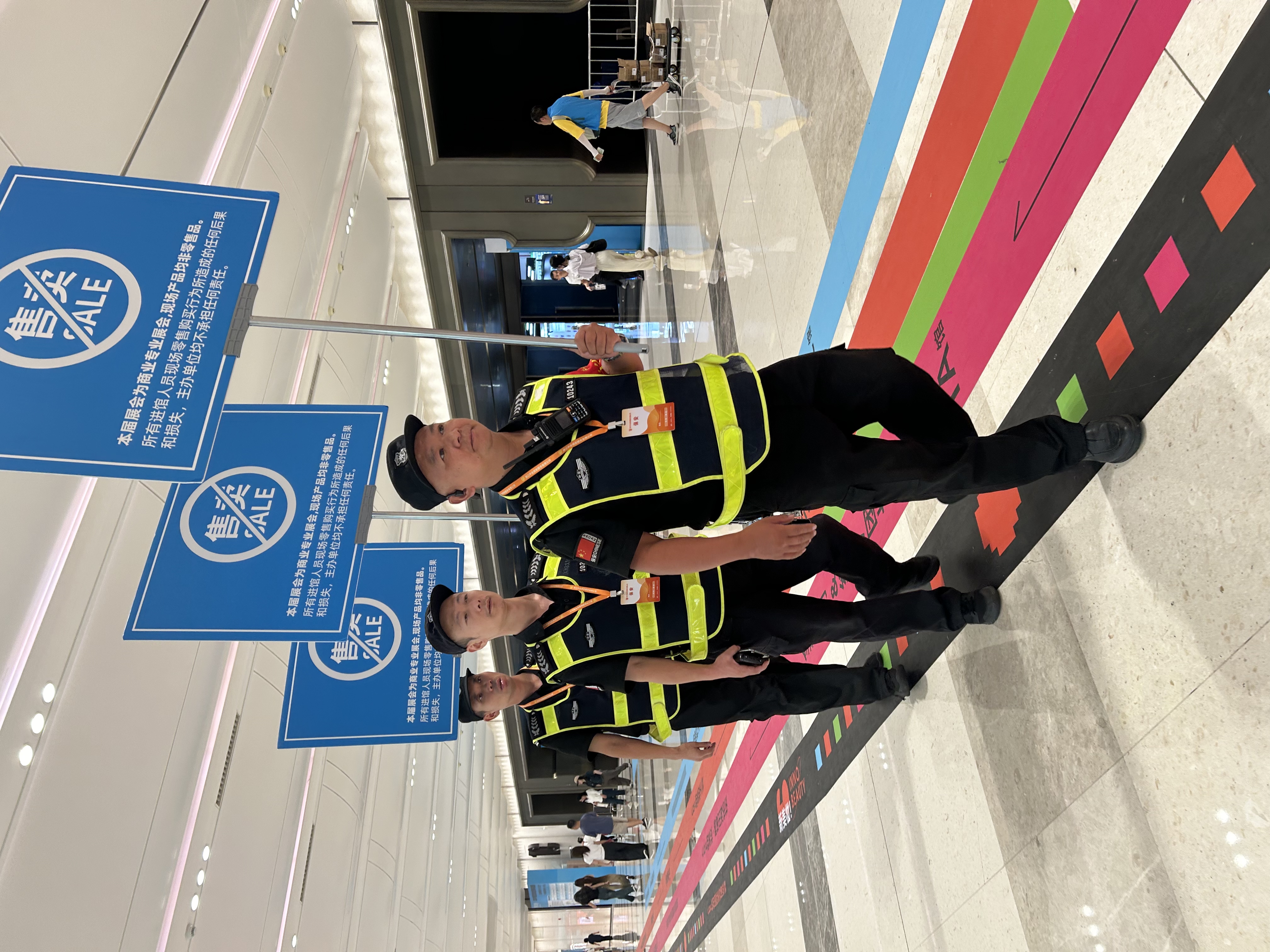 针对美博会展馆大,展位多、人流量大等特点,中全安保认真做好指挥调度工作,科学管理、合理配置、责任到人。作为极具发展前景的美容行业,其关注度不言而喻,面对庞大的人流量,黄牛,小蜜蜂等群体开始伺机而动。公司从安检第一道防线开始加大力度,安检员严格落实安全检查中“逢进必检,逢包必过,逢疑必查”的要求,对于大行李箱均进行开箱检查,从源头上杜绝此类人员进入馆内。2天的展会,共查验入场人员约33000人次,查验物品约25000件。高密度的安检工作中,队员们均无丝毫懈怠,充分展现了干一行、爱一行、钻一行的敬业精神。