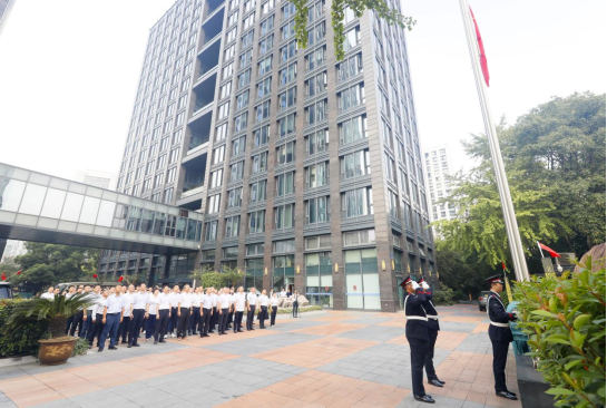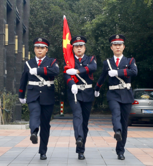 接到任务的那一刻起,浙江德全立即组织了一支由三名经验丰富的安保精英组成的升旗队伍,他们个个神采奕奕,眼神中闪烁着坚毅与自信的光芒。在他们的精心护卫之下,五星红旗在激昂的国歌声中庄严升起,迎风招展,熠熠生辉。