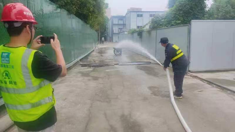 演练现场,浓烟滚滚火势猛烈。演练总指挥指接到险情报警后,第一时间下令启动项目应急预案,同时项目应急小组及我司保安立即奔赴现场,救援小组立即开展火灾扑救,疏散小组引导在项目现场的全体员工迅速、有序、安全地撤离到安全地方。本次应急预案演练,从火情发生到解救疏散人员、扑灭火源共历时15分钟,及时、有效地控制了火情的扩大,保证了人身安全,避免了财产损失,真正做到了分工明确,责任到人。在火情发生的第一时间,能够保证疏散抢救不慌乱,后勤保障准确到位,抢险救灾及时、安全。