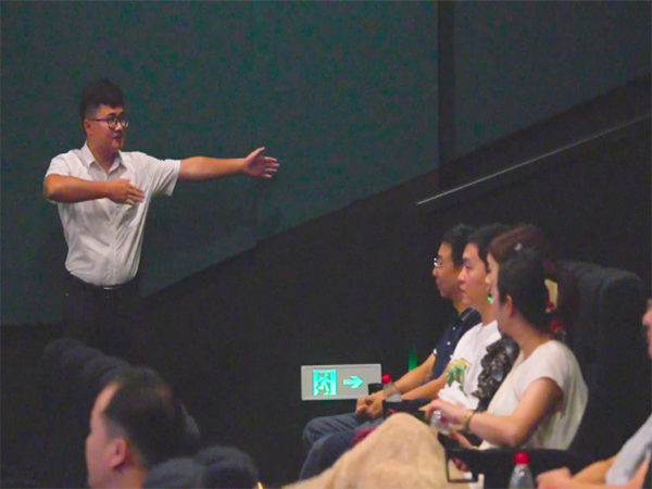 火灾发生后,餐饮店店员第一时间撤离厨房并告知正在用餐的顾客有序疏散至安全地带,消控室发现火情后立即通知巡逻组队员第一时间到达现场查看火警情况,由于火势较大,巡逻队员要求上报支援。与此同时,商场保安队员通知四楼电影院观众紧急撤离。