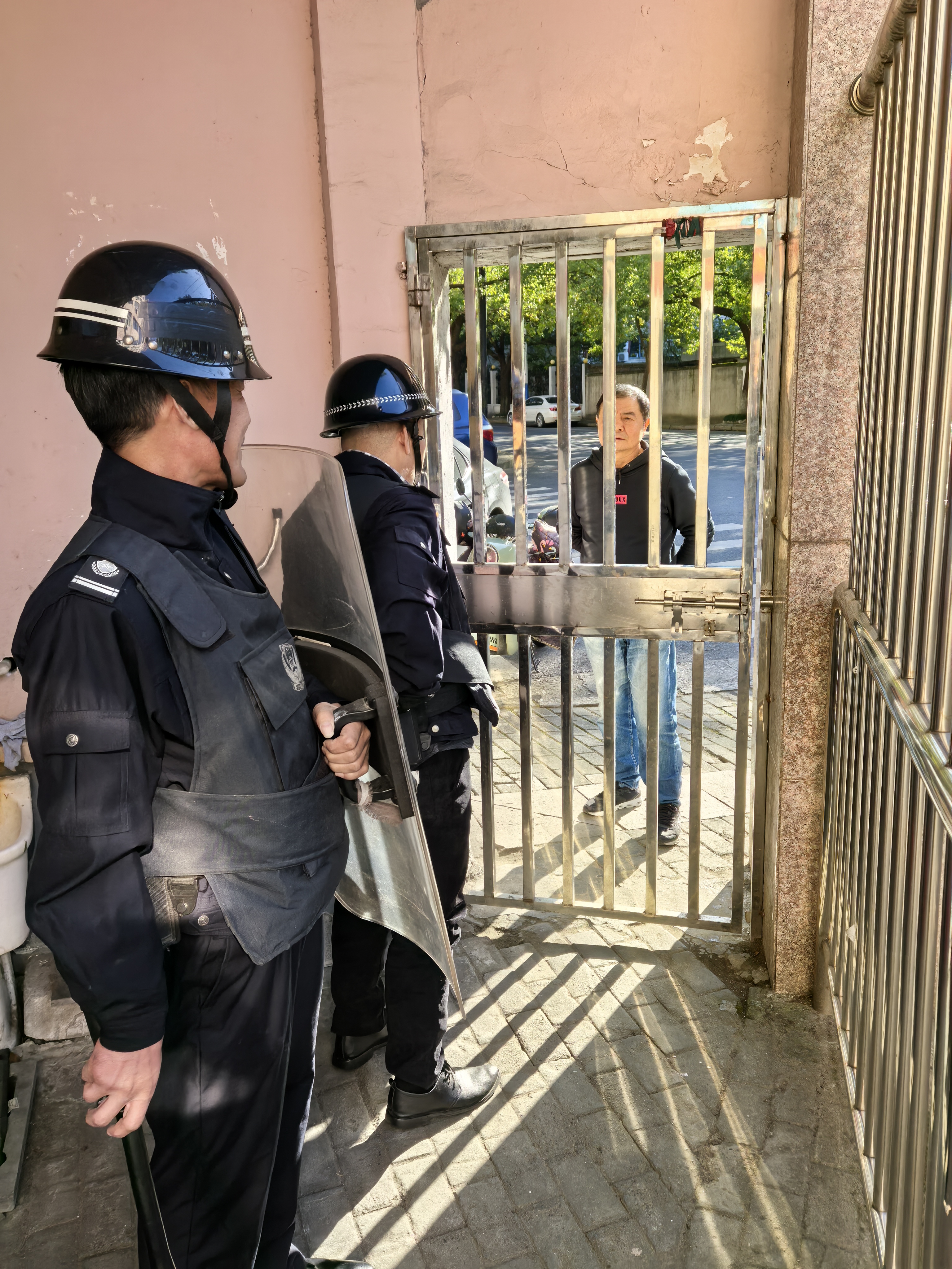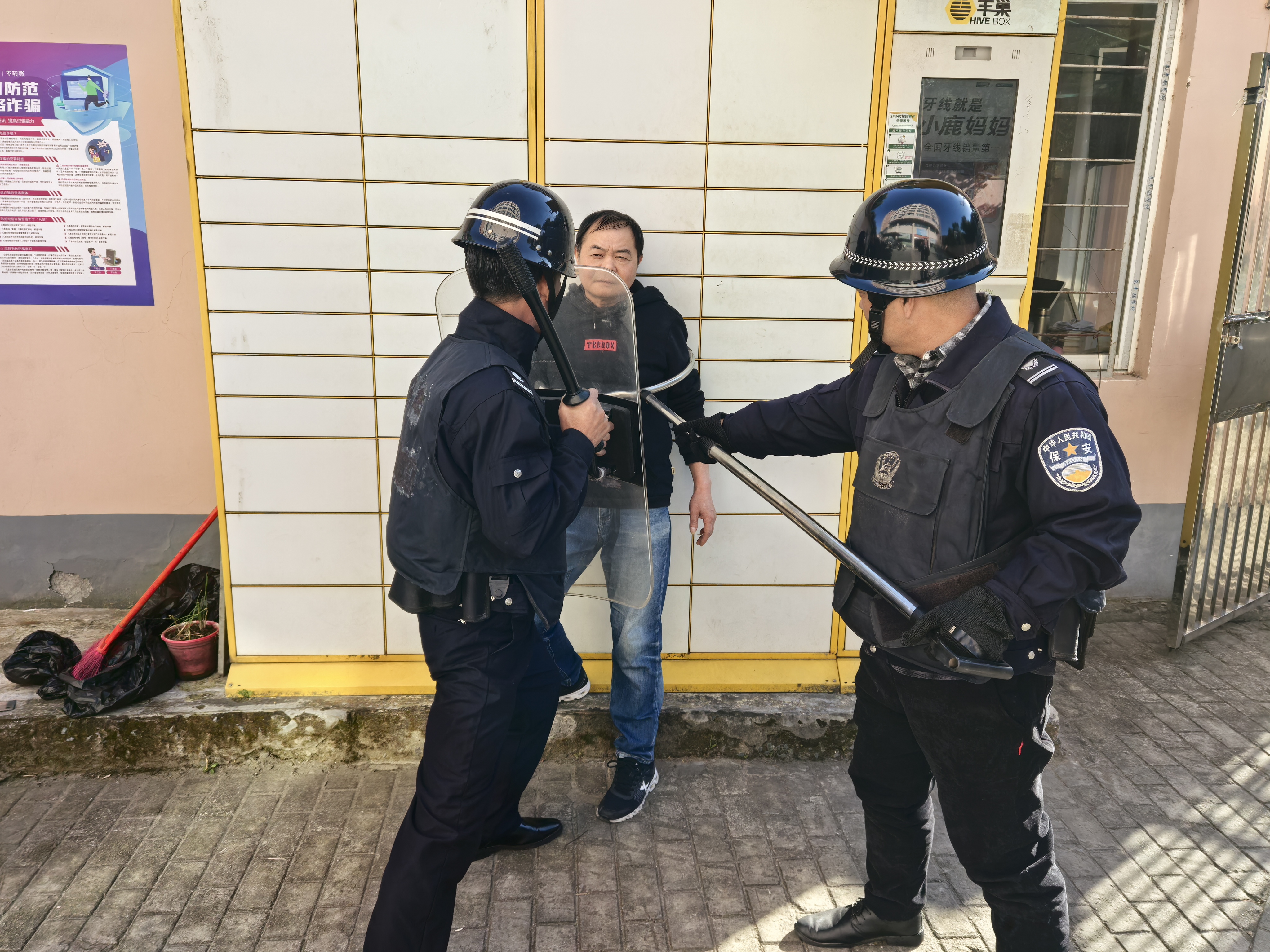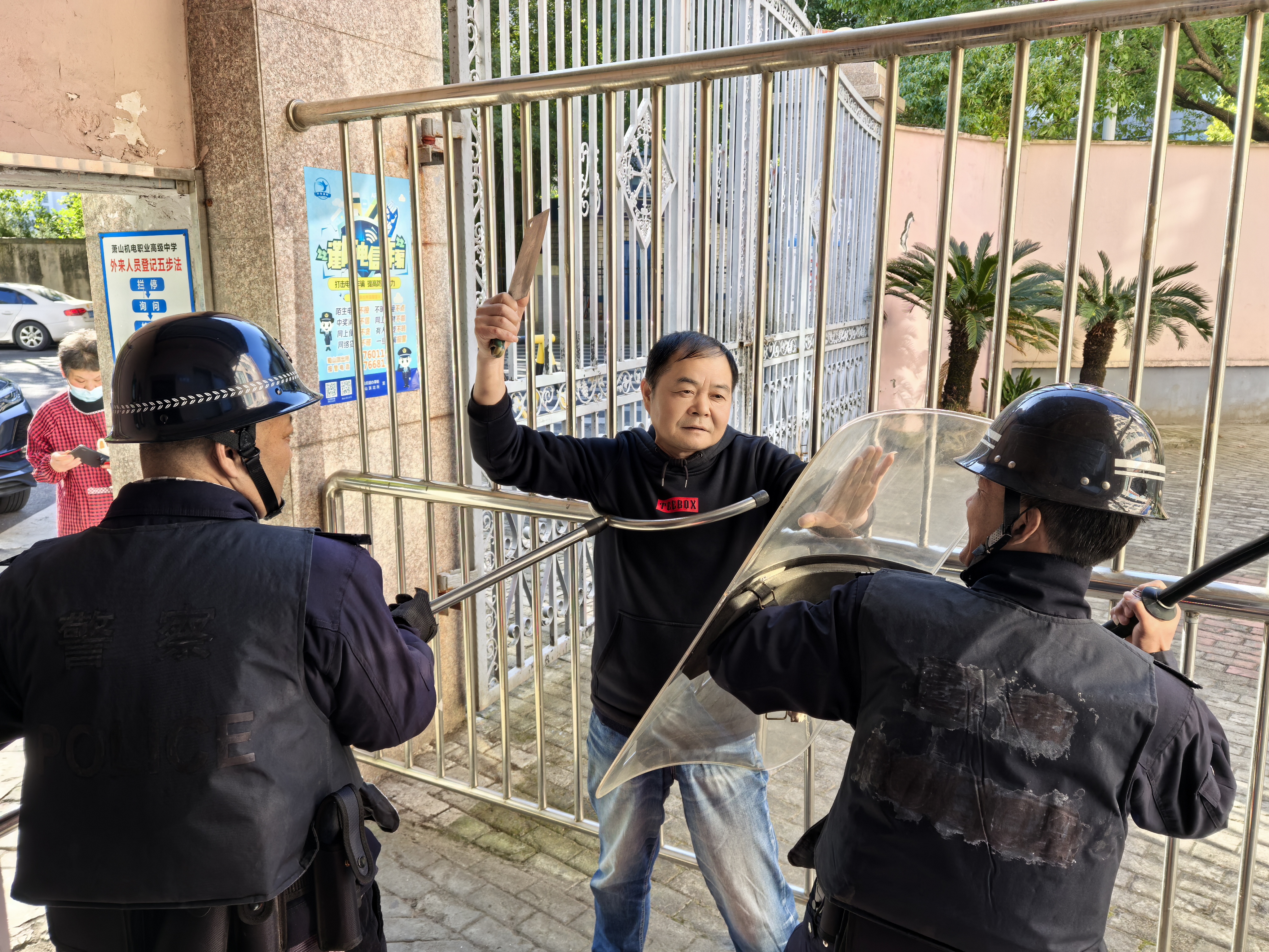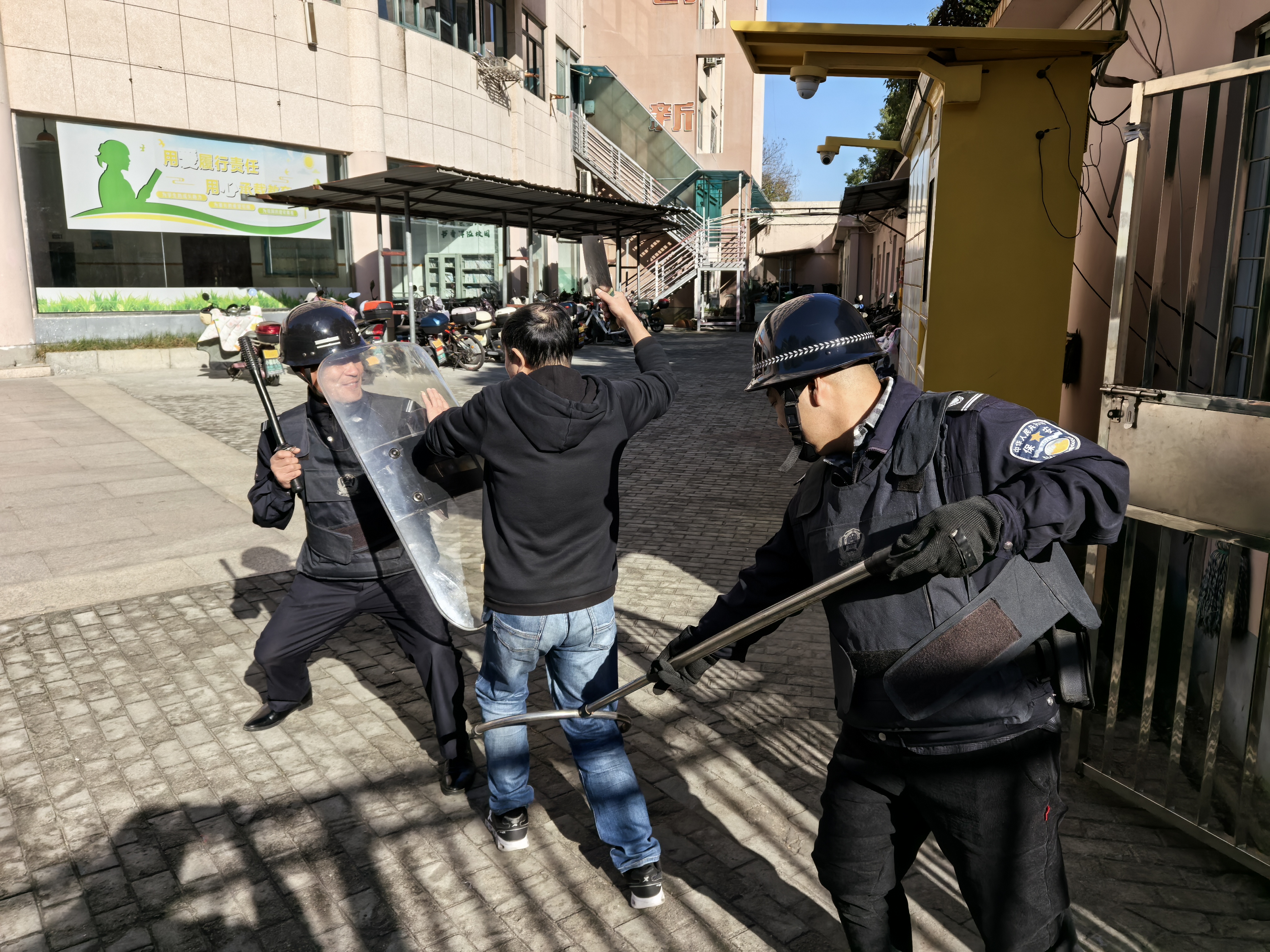 为了提升校园应对恐怖袭击的能力,保障师生生命安全,11月29日,我公司在萧山区机电职业学校精心组织了一场校园保安反恐演习。此次演习由经验丰富的保安队长丁顺顺和训练有素的保安队员孟现俊担任主角,生动展现了校园保安在反恐行动中的专业素养与果敢担当。