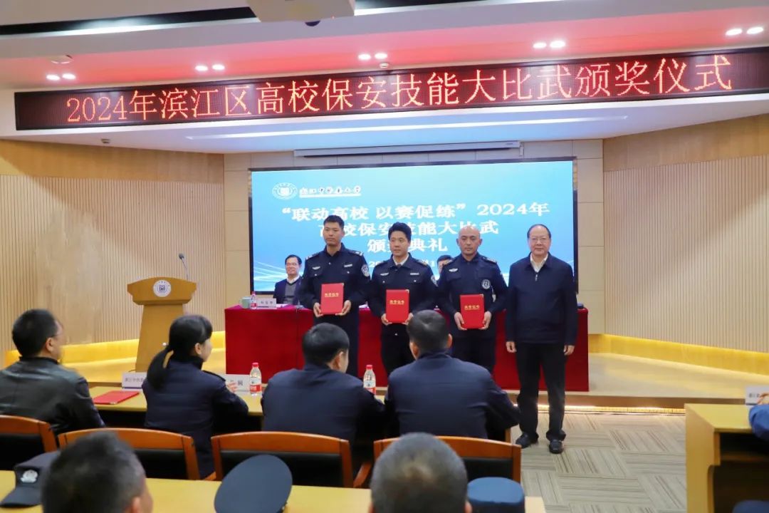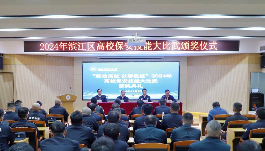12月1日,滨江区“联动高校、以赛促练”2024年高校保安联动大比武活动在中医药大学举行,此次活动由杭州市公安局滨江分局举办,浙江中医药大学承办。来自滨江高教园区的六所高校、浙江浙教集团有限公司安保代表等队伍参加大比武活动。