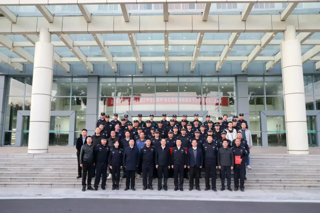 杭州市公安局经济文化保卫大队、杭州市公安滨江分局基层基础管理大队、浦沿派出所负责同志以及各参赛安保队伍人员参加颁奖仪式。颁奖仪式后,所有人员在行政楼门口合影留念。