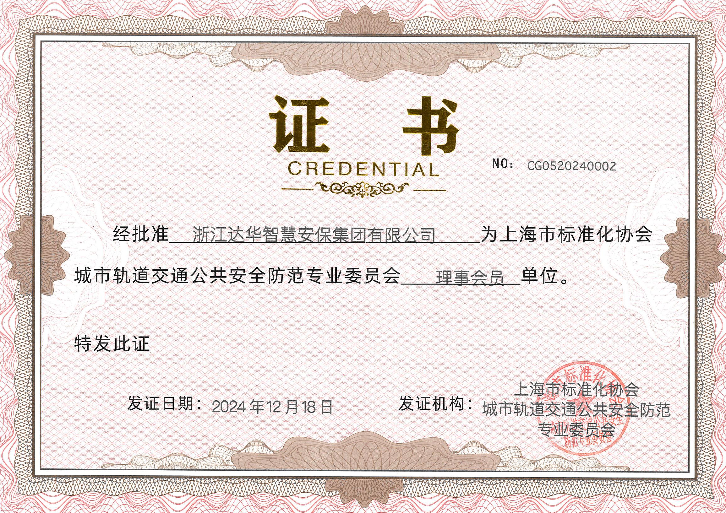 达华智慧安保集团当选城市轨道交通公共安全防范专业委员会理事会员单位
