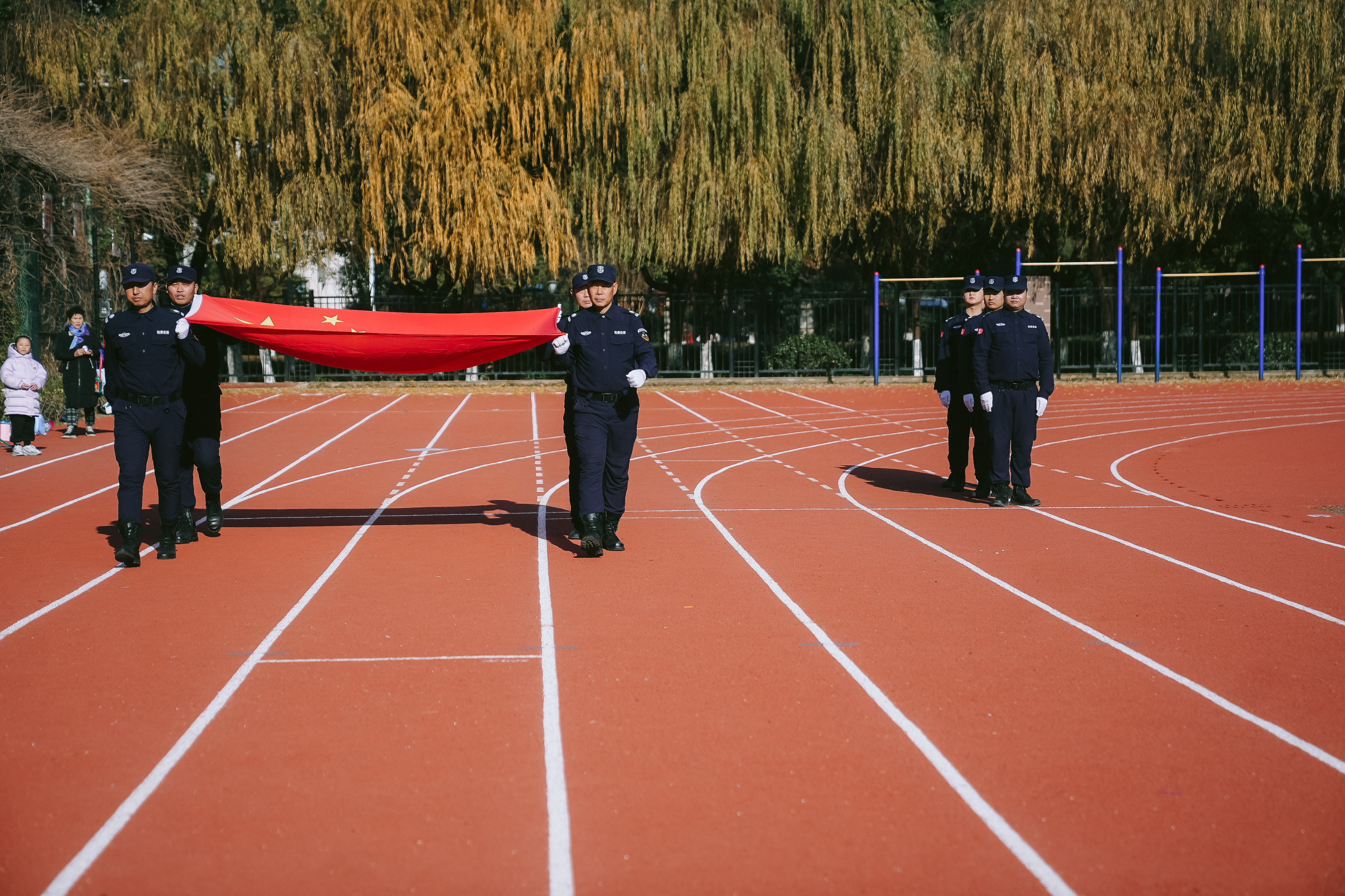 在庄严而神圣的升国旗仪式上,以及随后的拳术精彩演绎中,杭泰安保的特保团队荣耀登场,以其卓越的风貌与非凡的力量,充分展现了安保队伍的英姿飒爽与坚实可靠的实力。他们的精彩表现,不仅赢得了在场观众的阵阵掌声,更为整个活动增添了庄重与热烈的氛围。