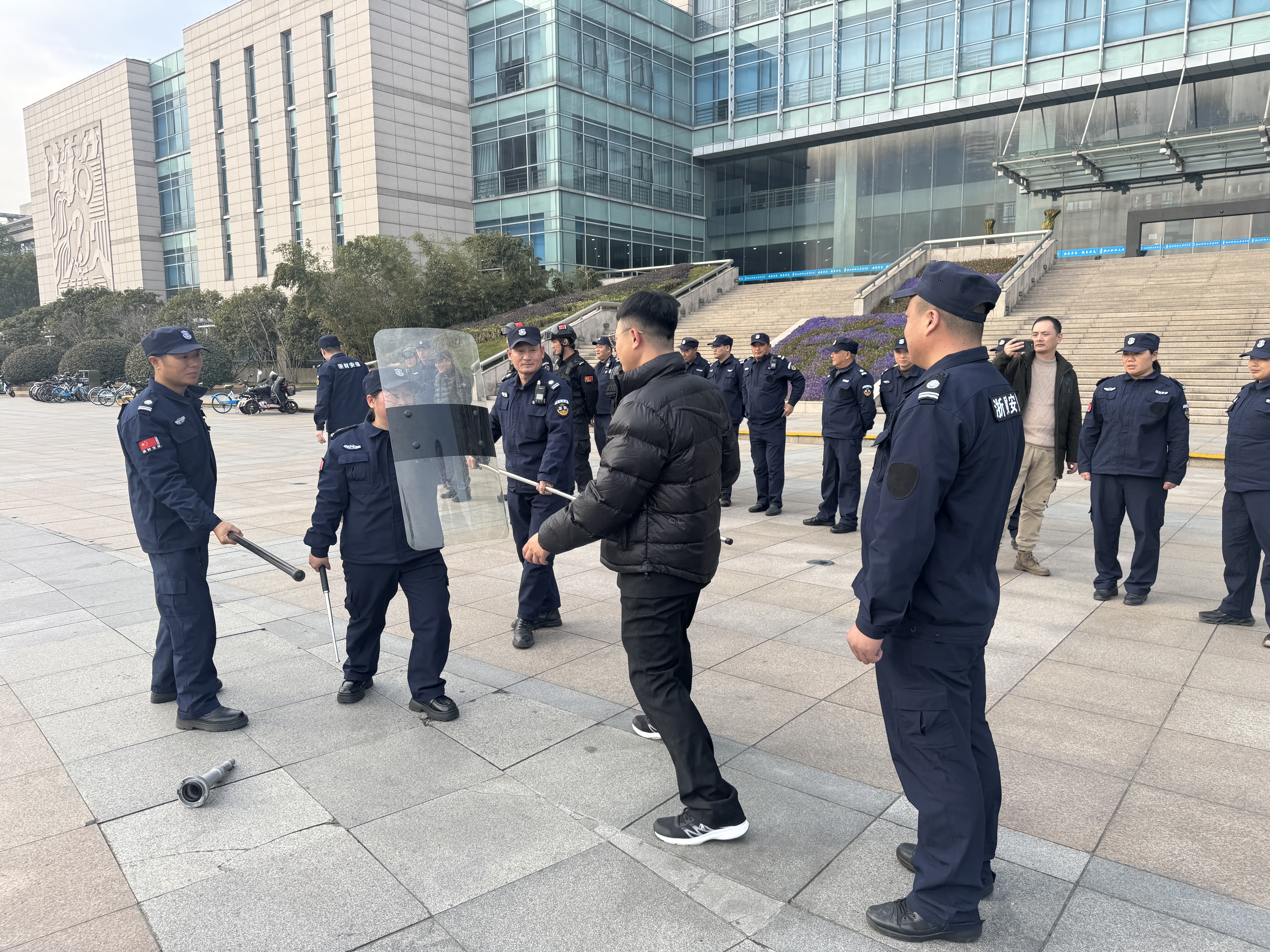 会议第一部分,由拱卫安保督查培训部培训主管为全体安保队员开展的节前集中培训。培训内容丰富实用,涵盖了反恐、文明服务礼节礼貌以及应急处置等多个重要方面。通过专业的讲解和实操演示,队员们进一步提升了应对突发事件的能力,增强了文明服务意识,为校园的安全稳定和师生的良好体验奠定了坚实基础。