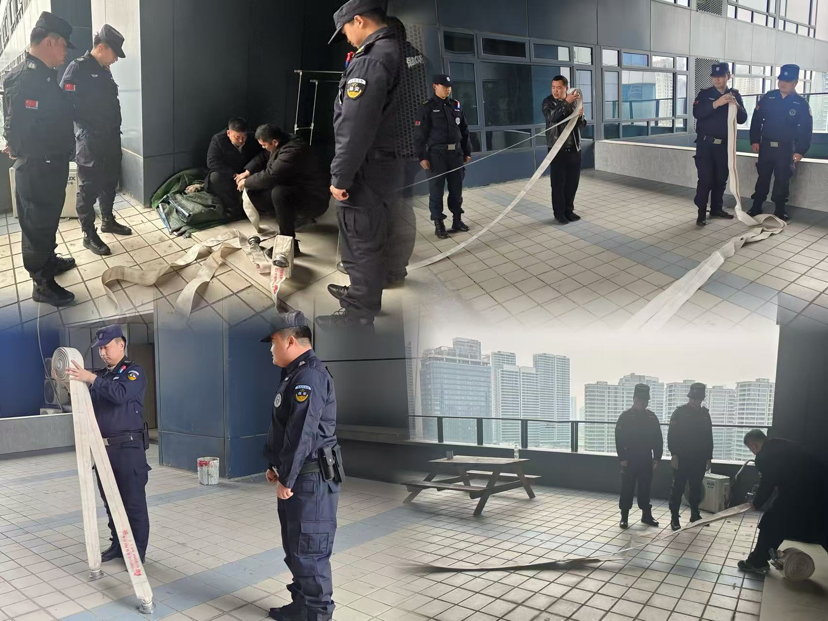 消防水带的正确使用,是保安人员应对火灾险情的必备技能。培训现场,教官详细讲解了消防水带的结构、展开方法、连接技巧以及喷水操作要点。保安人员们分组进行实操练习,从快速展开水带到准确连接水枪,再到熟练喷水灭火,每个步骤都认真对待。