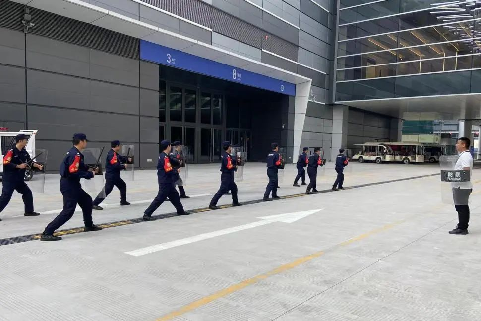 荣誉的背后,是公司的严格管理,更是队员的辛勤付出。团队入驻大会展中心以来,一方面积极面对极端高温、广阔场馆区域及长距离通勤等多重挑战,展现出了非凡的毅力与专业精神。另一方面,高度重视队伍能力建设,不仅强化基础技能训练,还深入实施了系列专业提升计划,包括消防演练、反恐防暴、防台防讯、队列换岗、岗位纪律及礼节礼仪培训等。